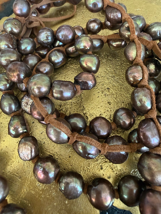 Tess Chocolate Pearls Triple Wrap Necklace