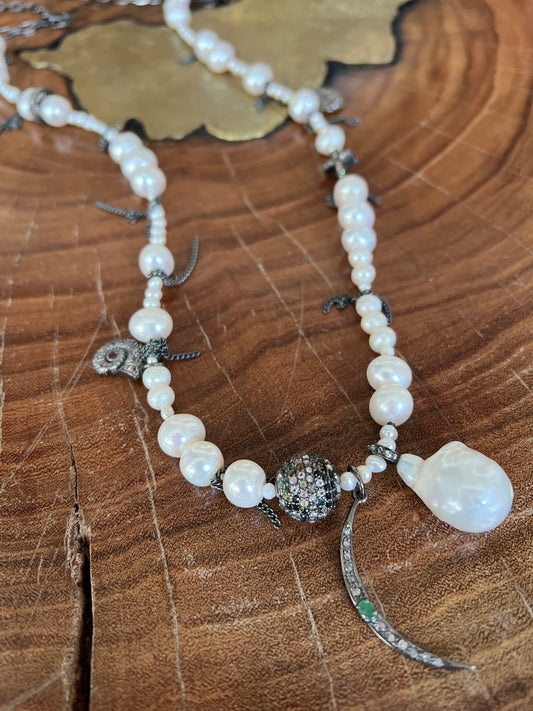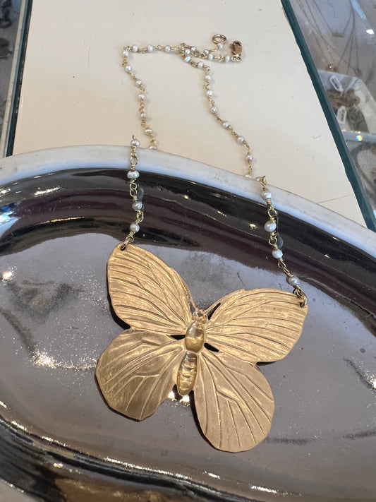 Ruby & Violet Cluster Pearl Butterfly Necklace