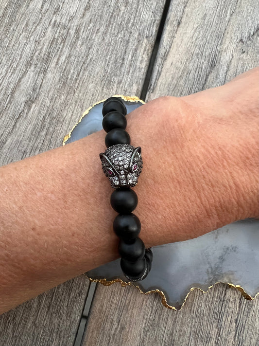 Ruby & Violet Black Onyx Panther Beaded Bracelet