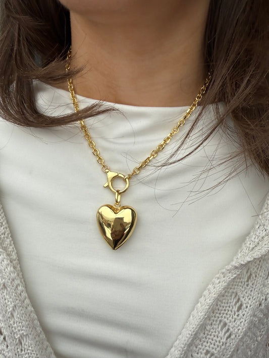 Ruby & Violet Thick Link Puffy Heart Necklace