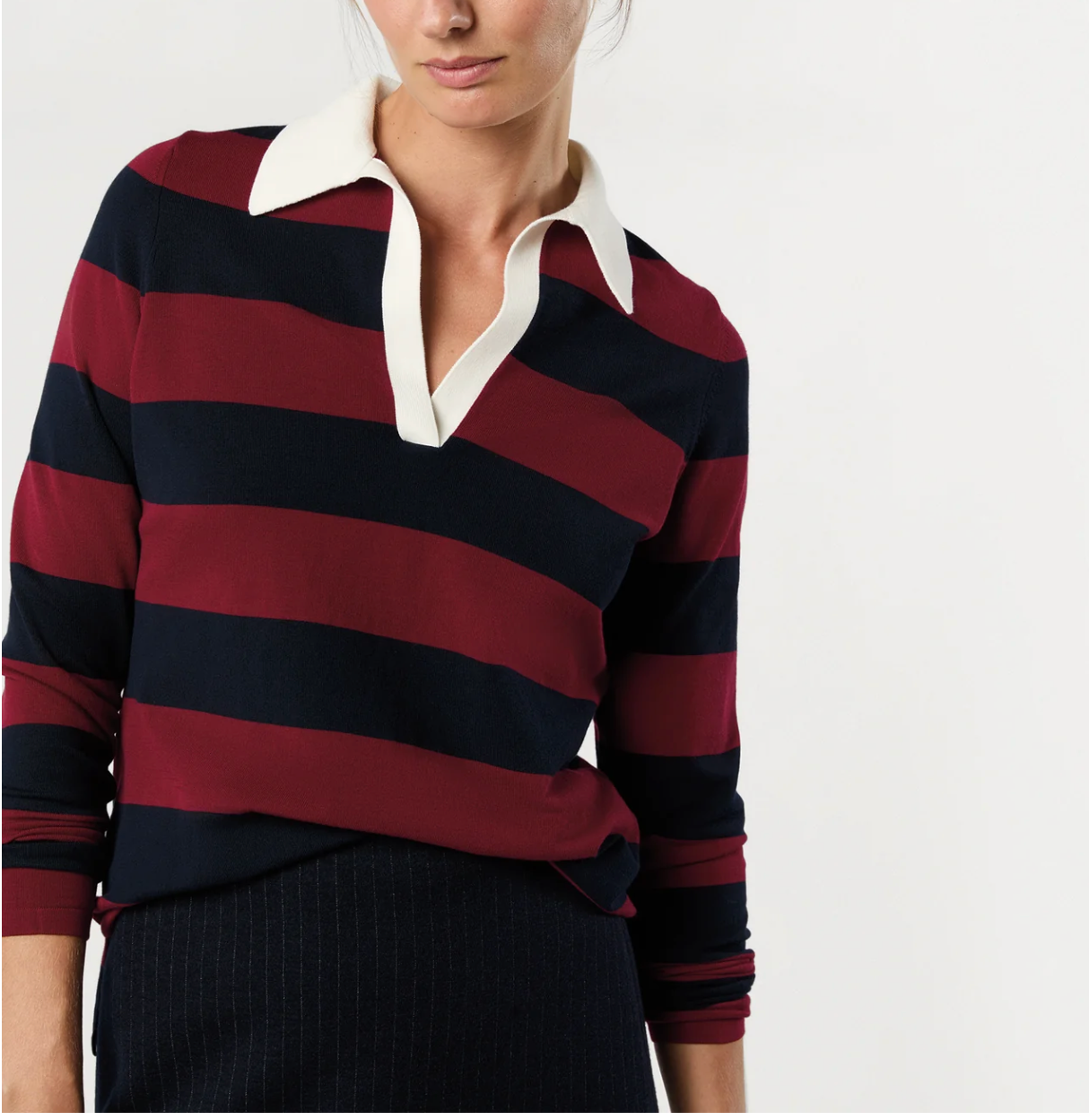A traditional rugby-style polo, taken up a notch in a luxe high-twist cotton knit that almost feels cool to the touch (hence the name). We love the mix of tomboy styling with a feminine fit — not too boxy and not too trim, with a clean buttonless placket and sleeves that look great pushed up.