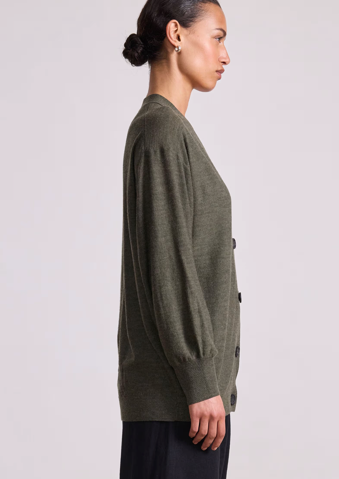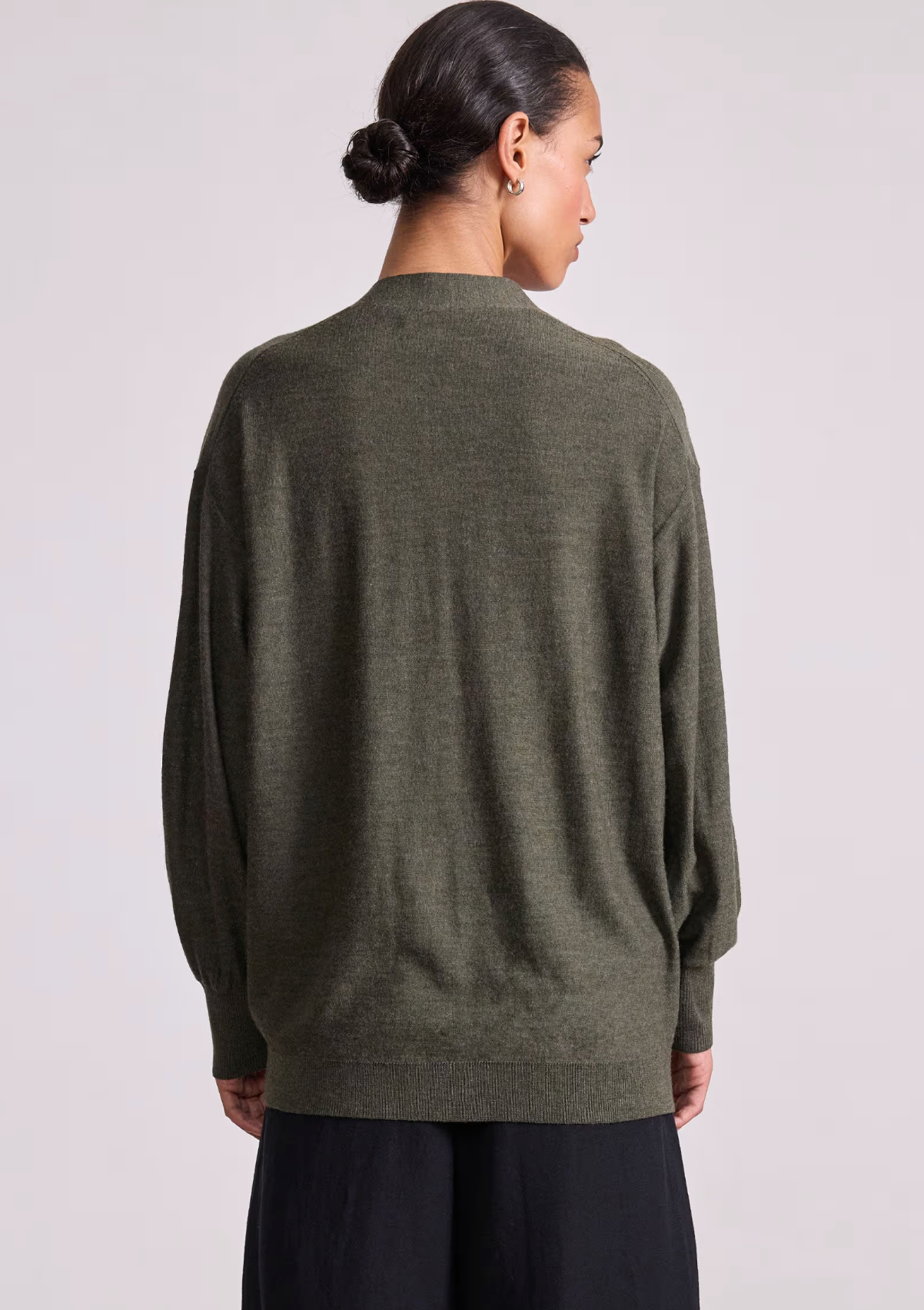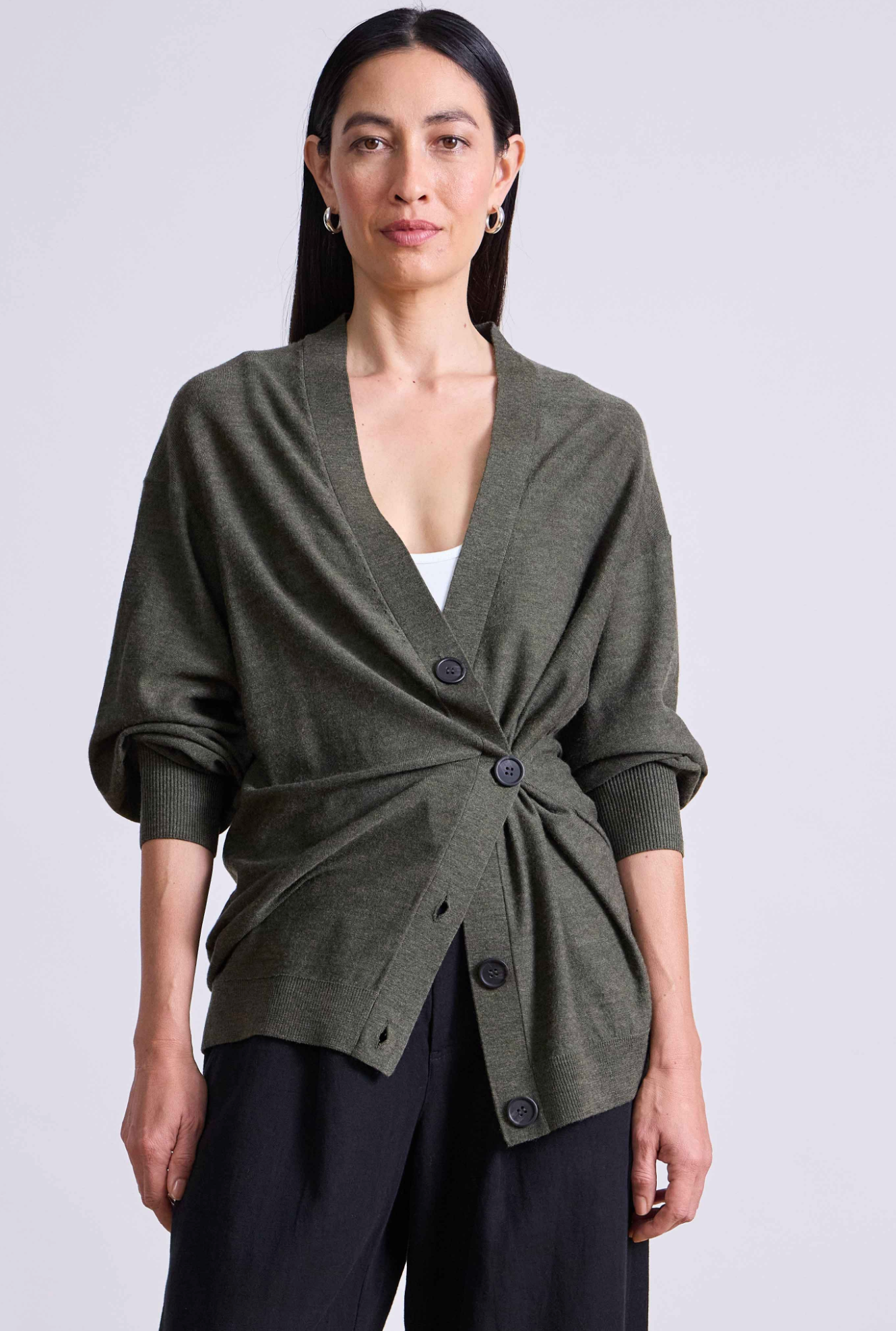 - V neck, relaxed fit, 4 button closure, option to fasten with the extra button at the left side waist for a loosely fitted look