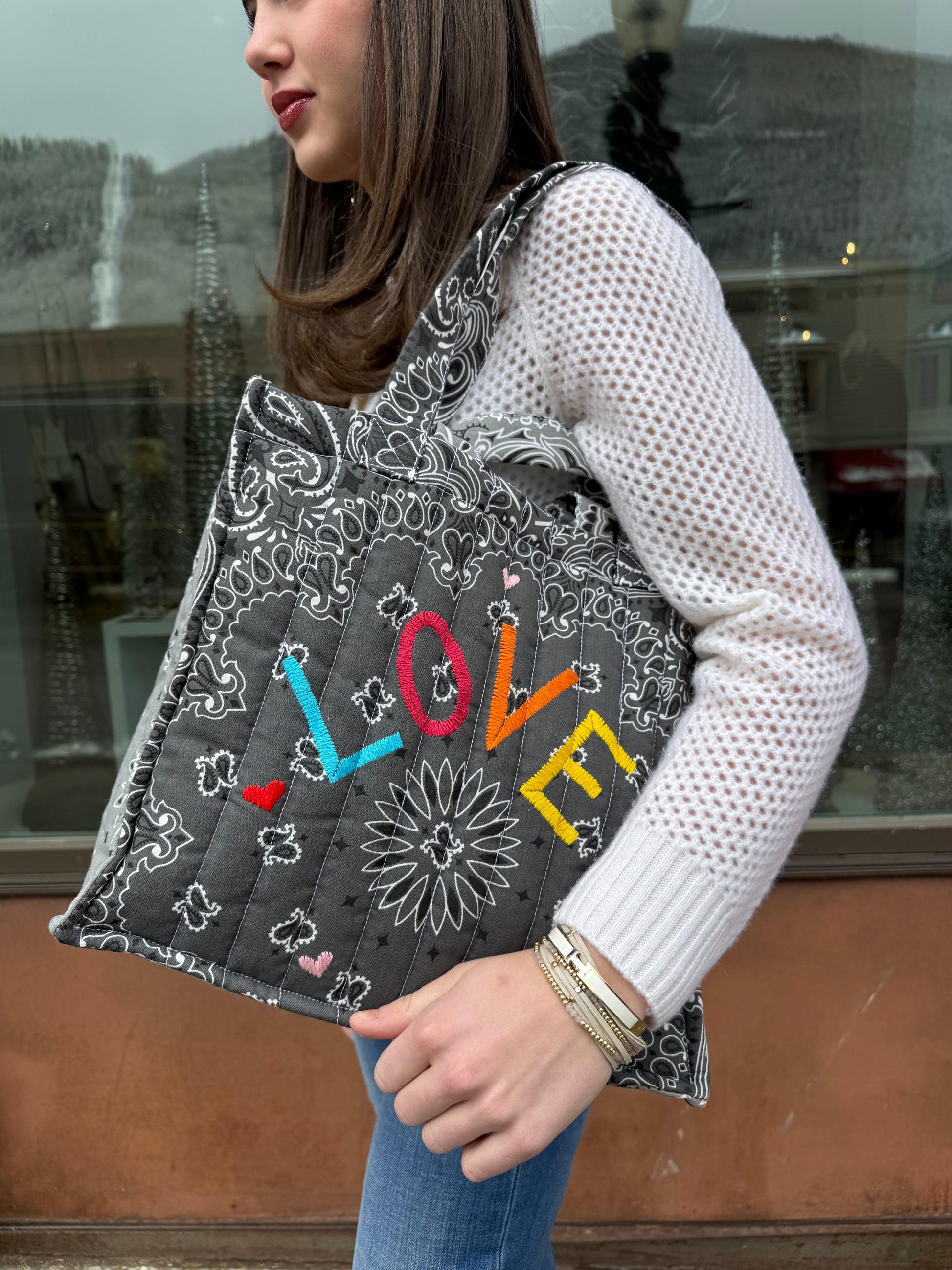 Medium quilted embroidered tote bag. With 4 handles, you can carry your bag both on your shoulder and in your hand.