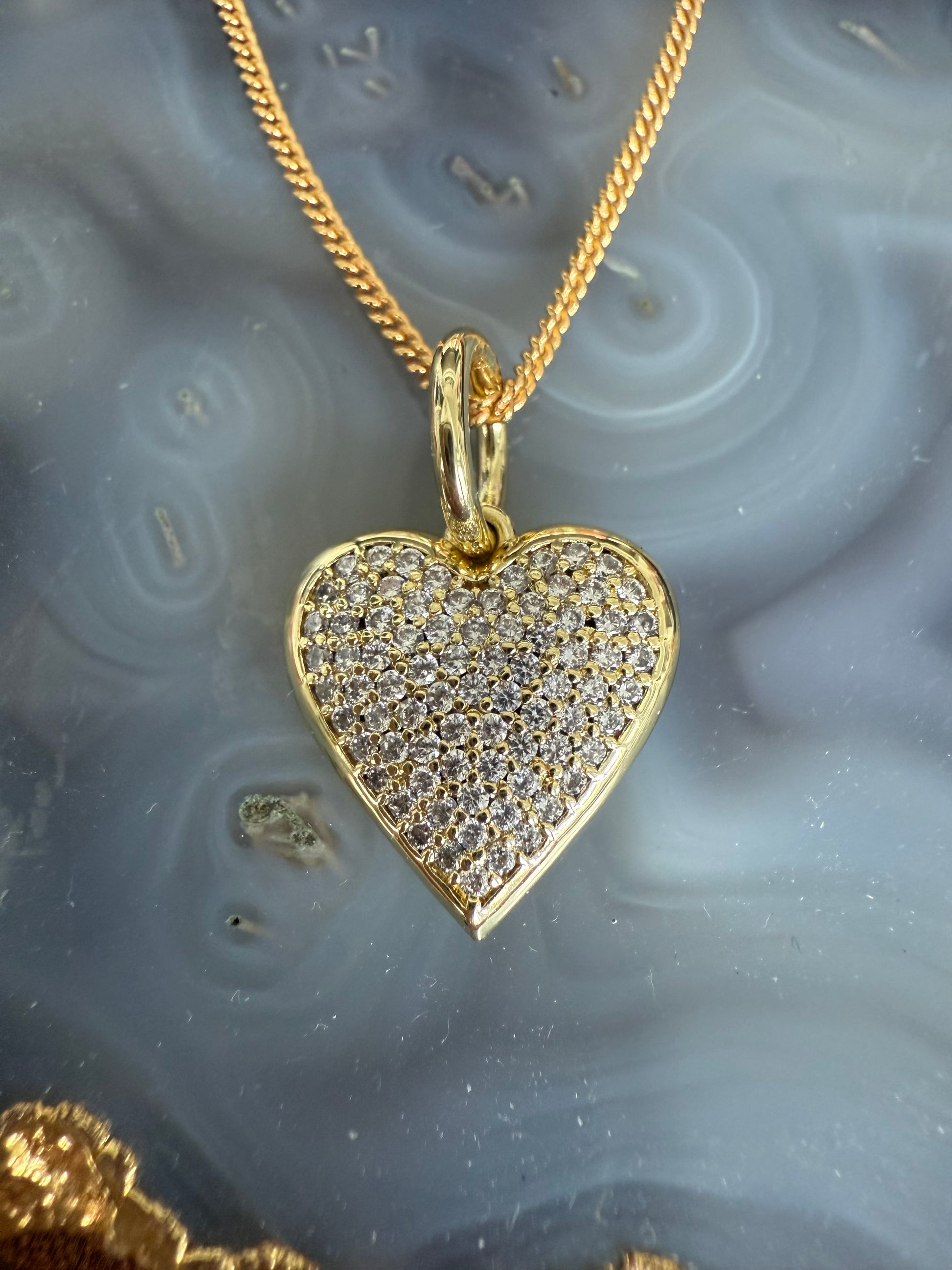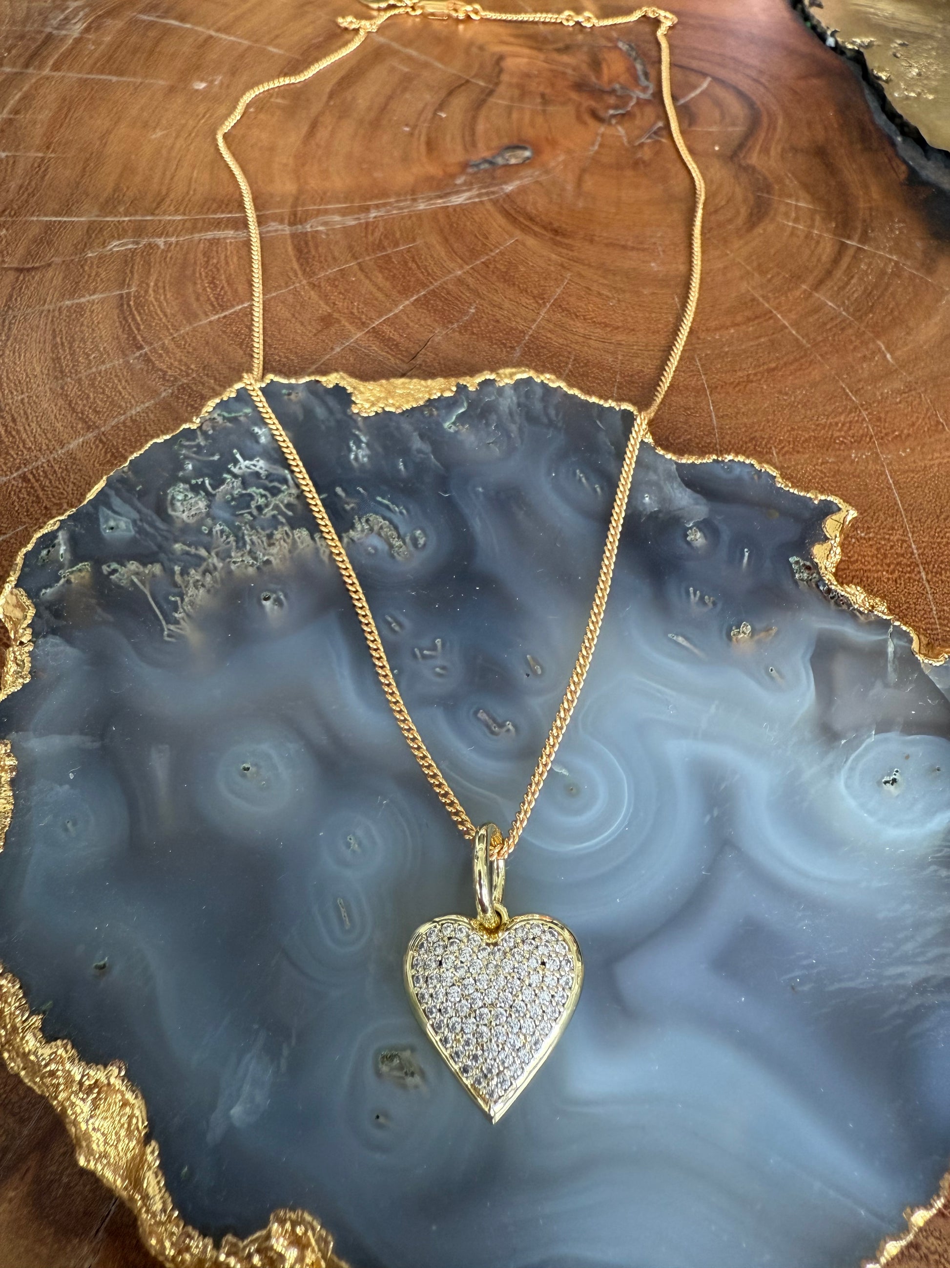 Lauren Amble heart double sided Pave Necklace on 18" adjustable curb chain