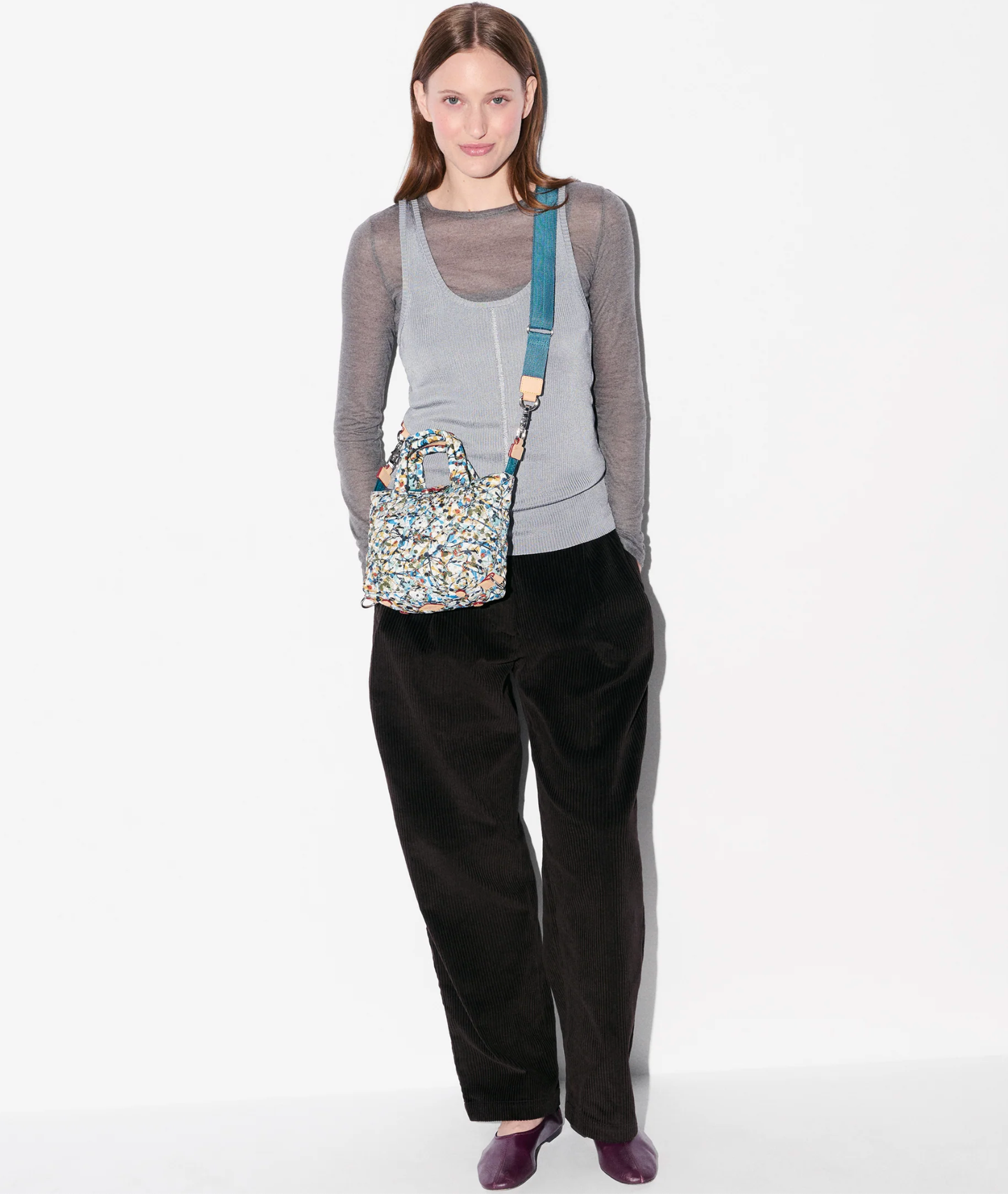 - Detachable, adjustable nylon crossbody strap
