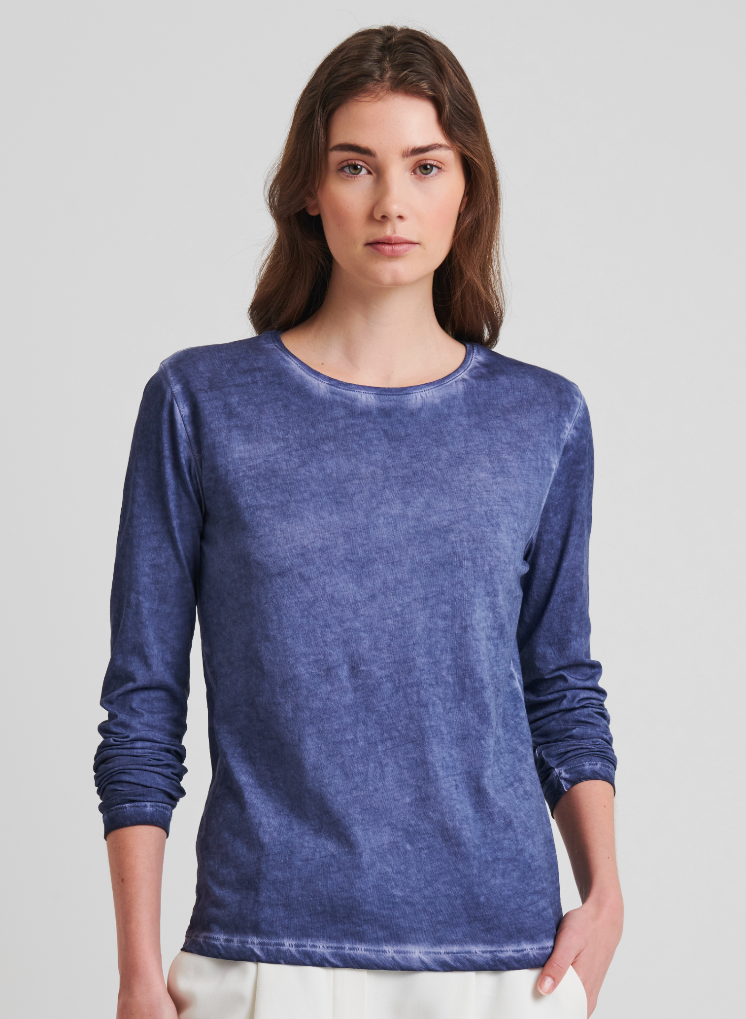 Made from luxurious Peruvian pima cotton, this washed long sleeve crewneck t-shirt boasts a refined vintage aesthetic. Soft, comfortable, and versatile - perfect for layering. Upgrade your wardrobe with this unique dyeing process.