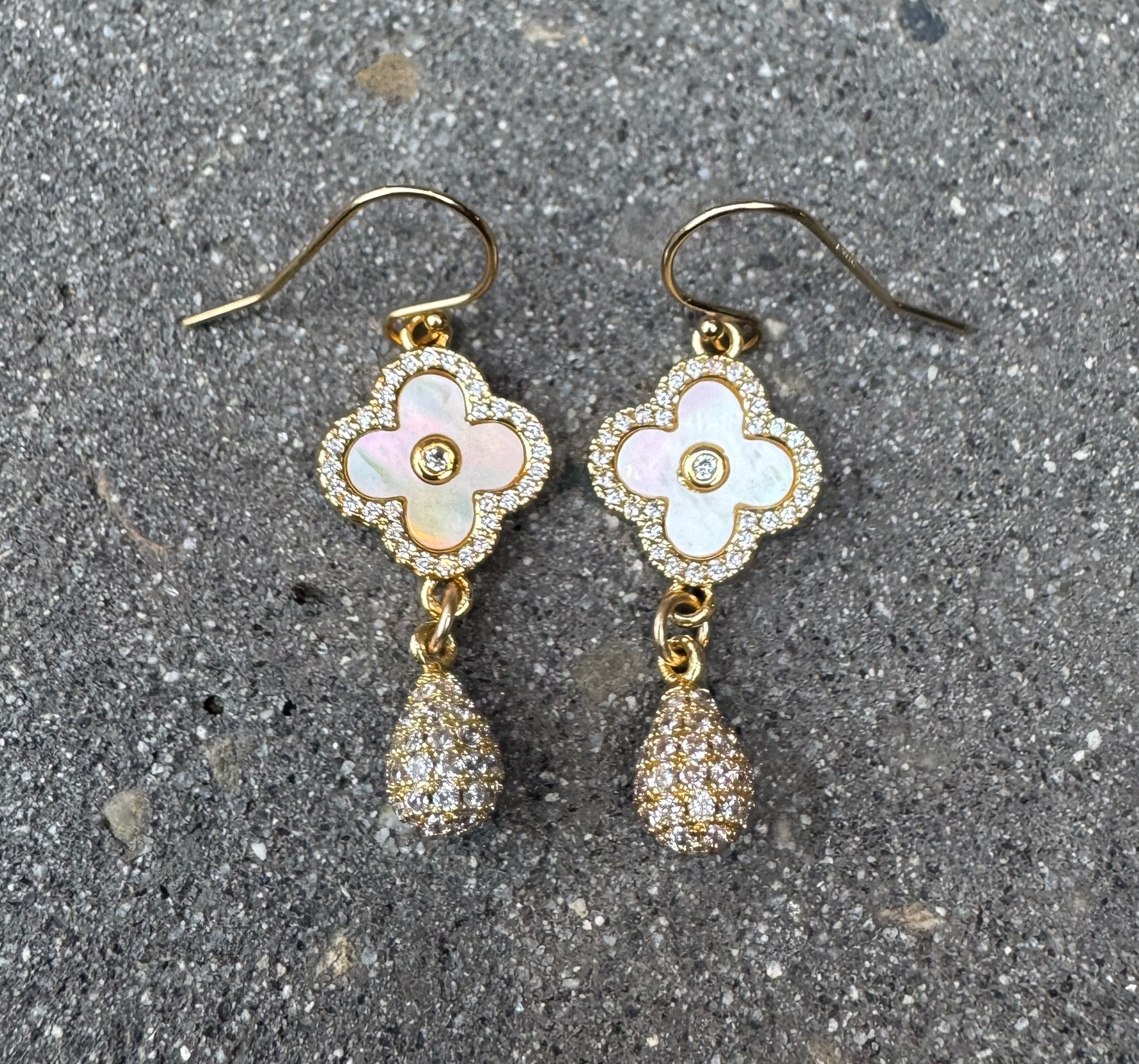Ruby & Violet Mother of Pearl Clover Drop PAVE Earrings