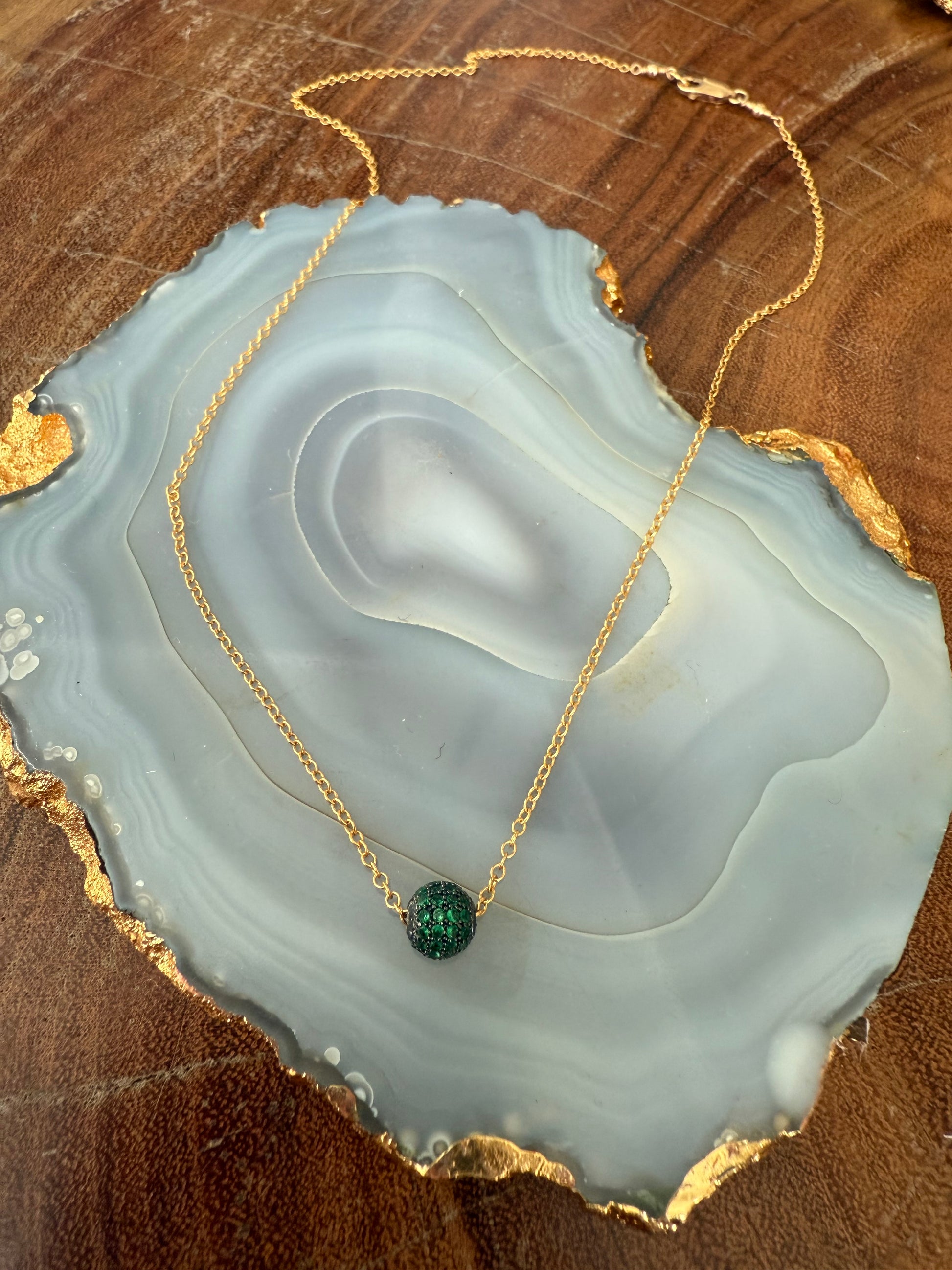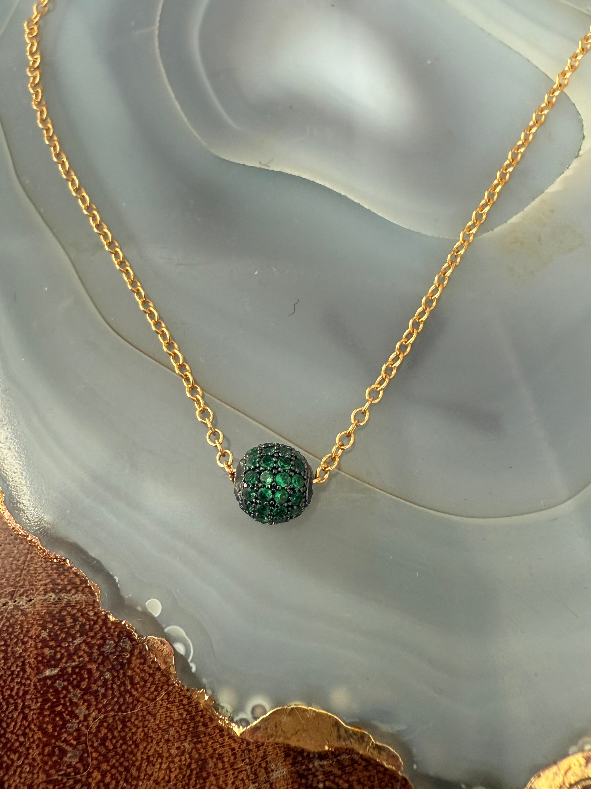 14k gold plated chain with pave bead charm.