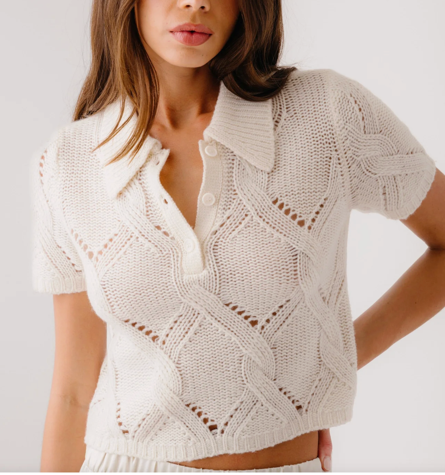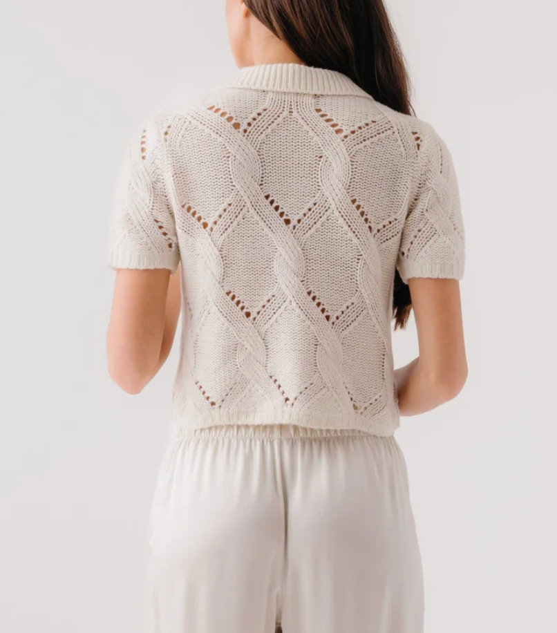 Shrunken polo in cashmere with cable stitch.