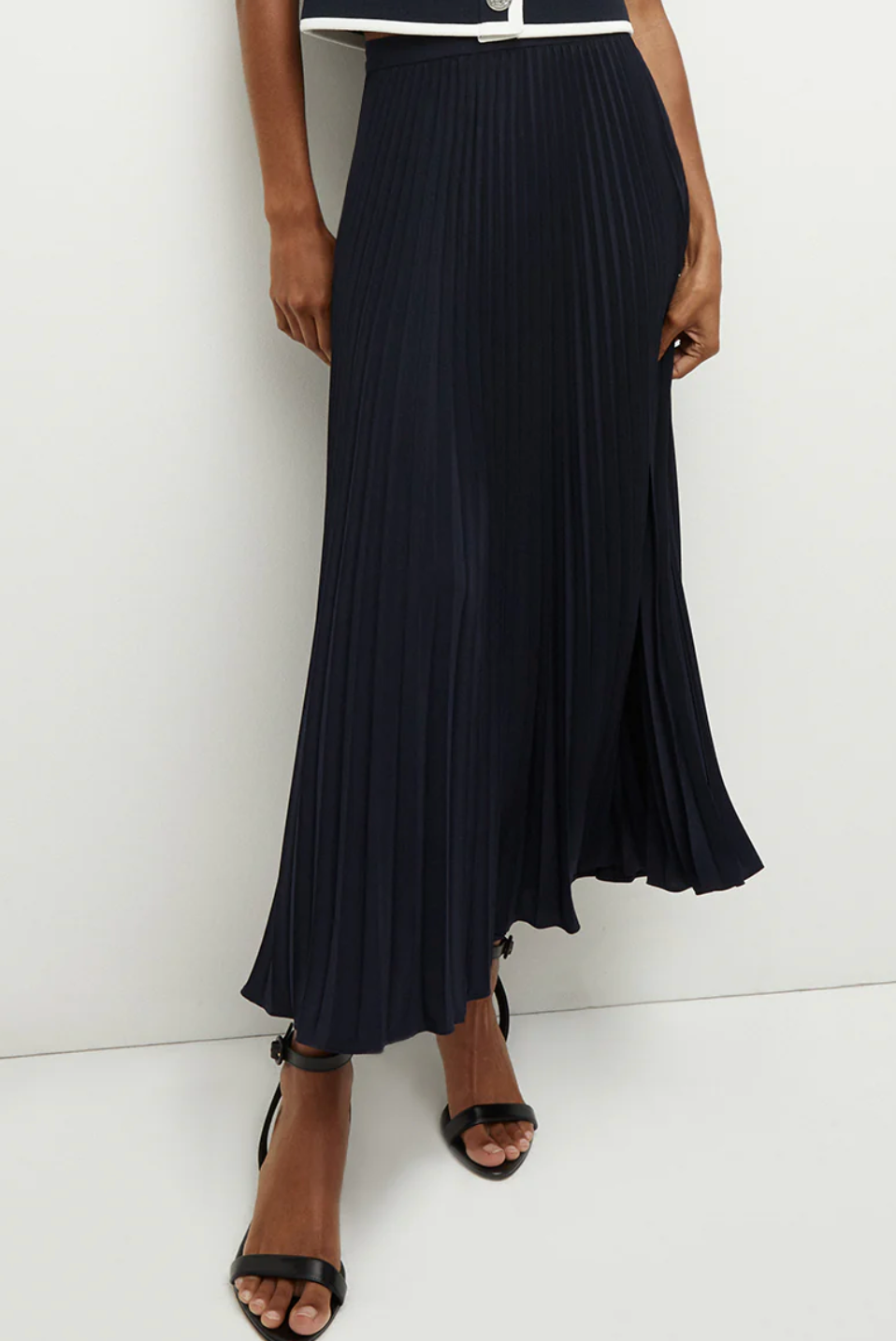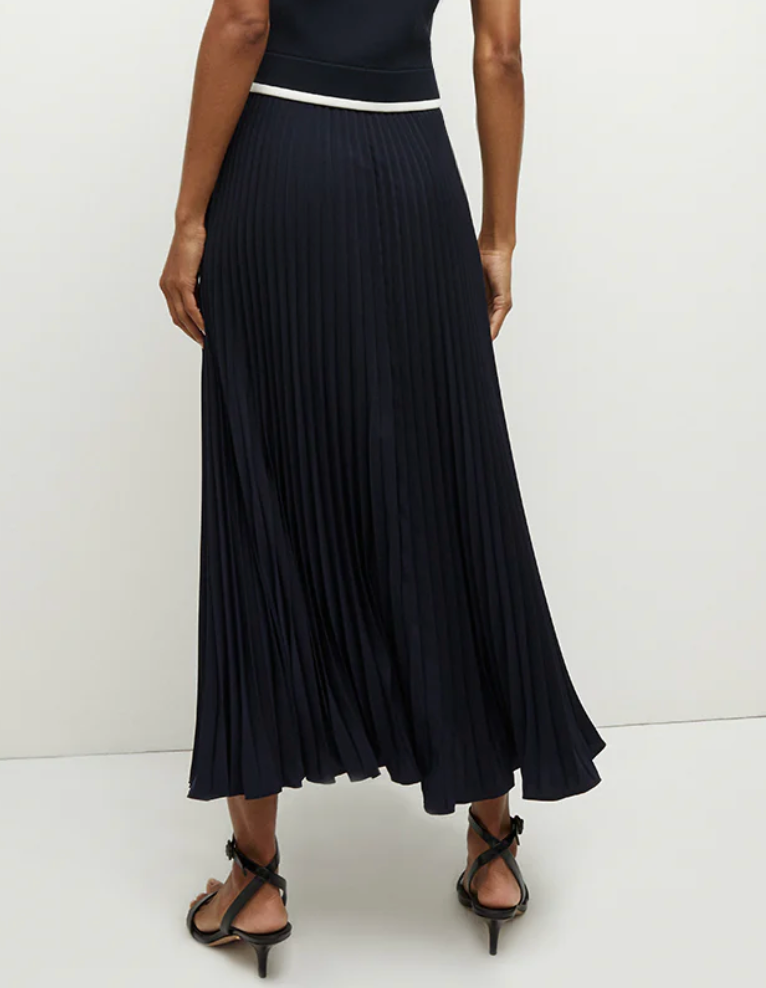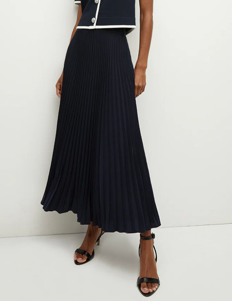 Allover accordion pleats define this high-waisted midi, which is cut from a lightweight silky fabrication to ensure beautiful drape and movement with each step.