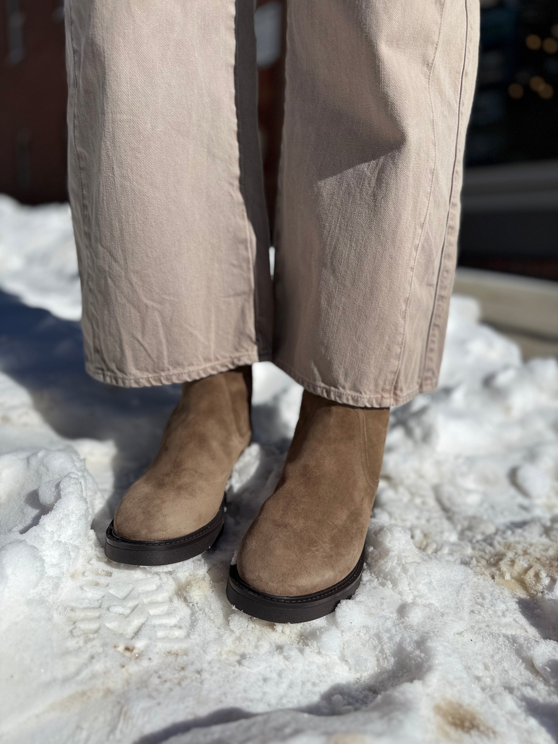 The essential ankle boot—timeless and sleek. Expertly crafted from premium brown suede, the Creswell is a clean, minimalist bootie lined with ultra-soft shearling. Featuring a slim mid-calf silhouette, rounded toe, and flat rubber sole with subtle lift, it’s finished with a concealed size zipper for ease. Ever versatile, pair these chelsea boots with everything from wide-leg jeans to maxi dresses to instantly elevate your look.