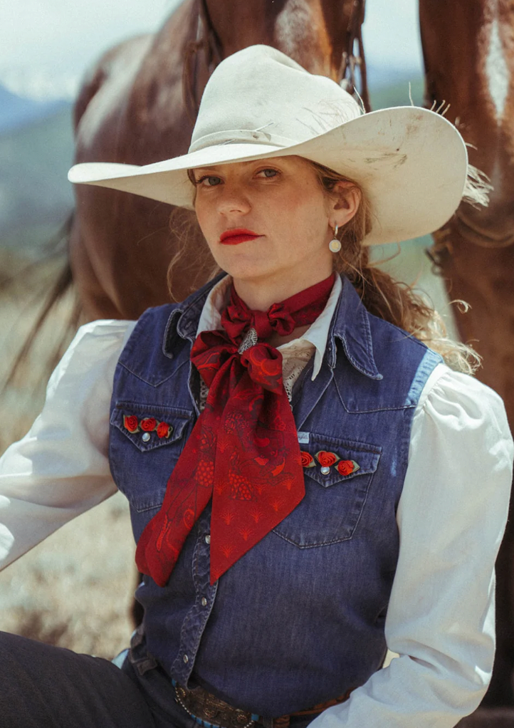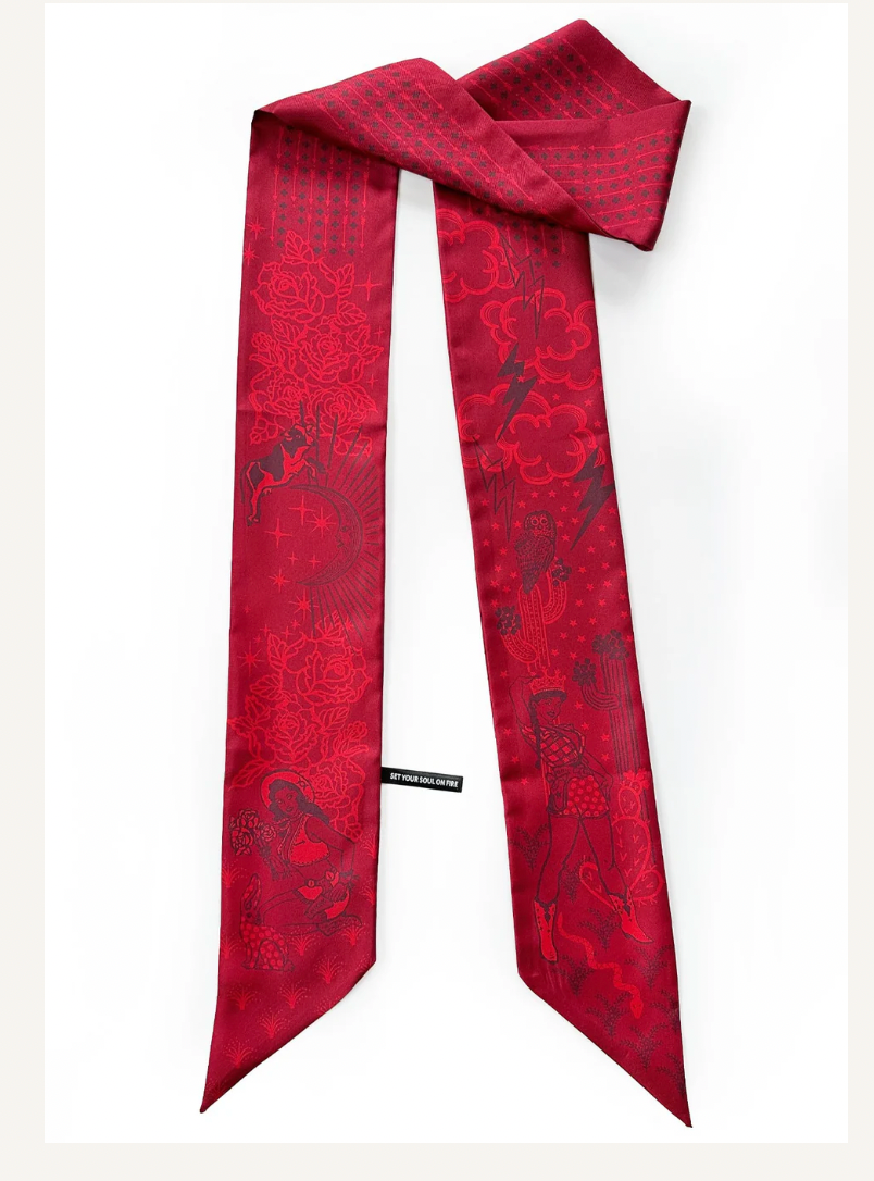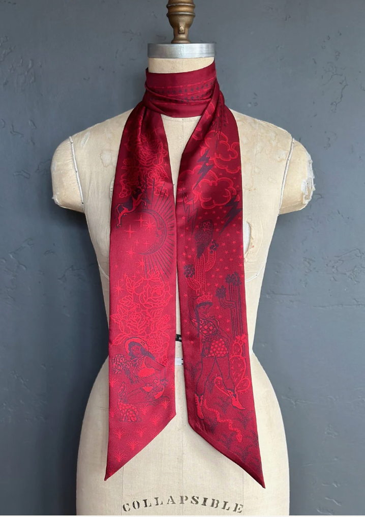 Wear Your Story – An exclusively illustrated silky capturing the spirit of the modern cowgirl and the soul of the southwest.