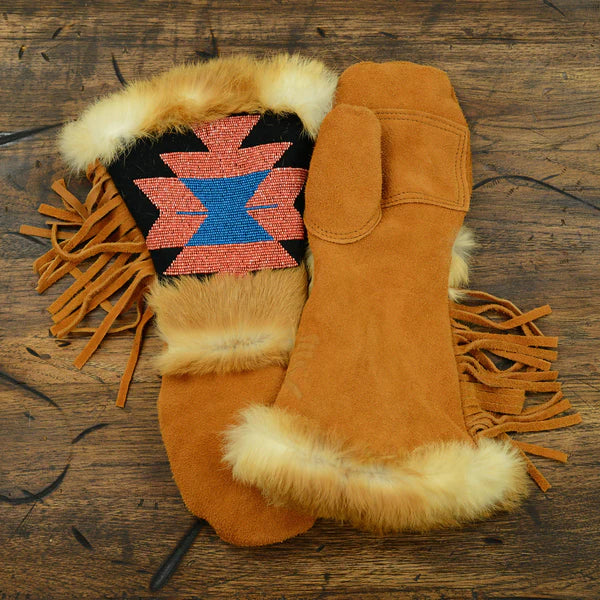 As each leather mitten is hand-sewn and uses natural materials, every mitten will possess slight variation in the look of the leather, beadwork, and fur trim. Astis embraces these subtle differences and views them as unique mittens more akin to works of art.