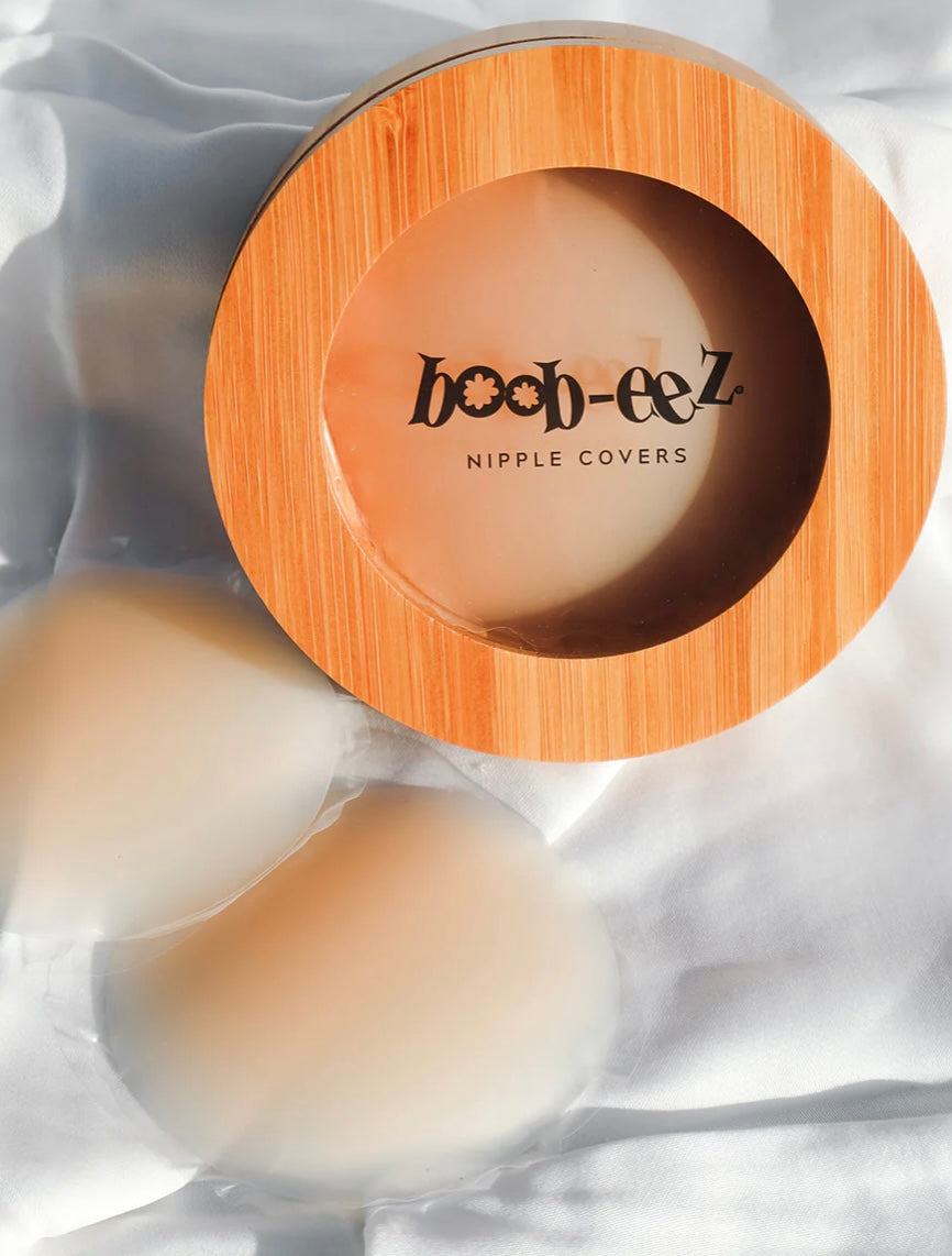 Expand the lifetime of your pasties with this revolutionary combo: Boob-eez® #1 best-selling silicone nipple covers + a premium compact made from all-natural bamboo!