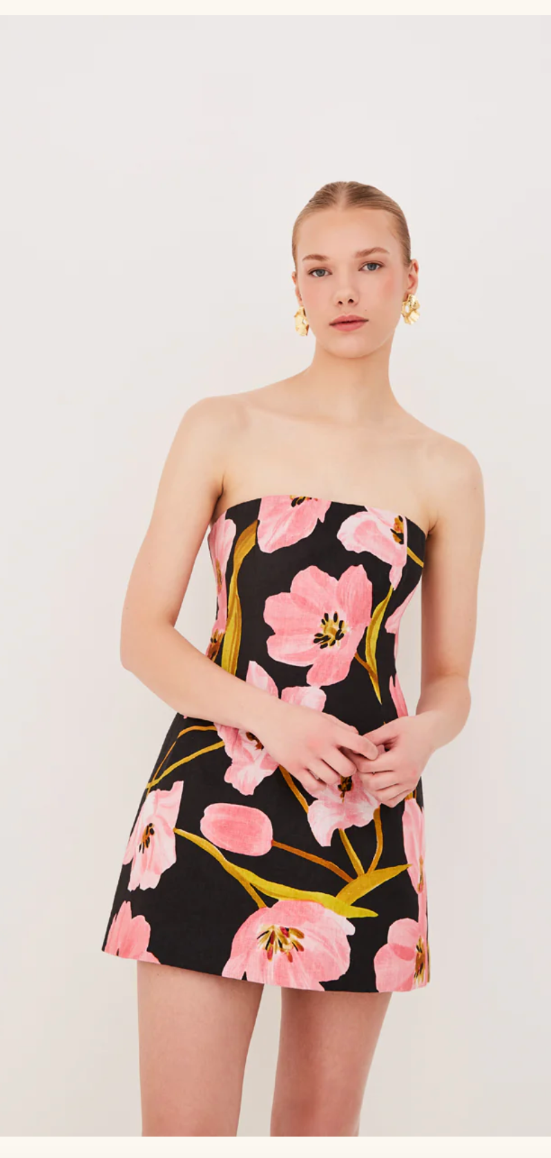 • Strapless tulip mini dress