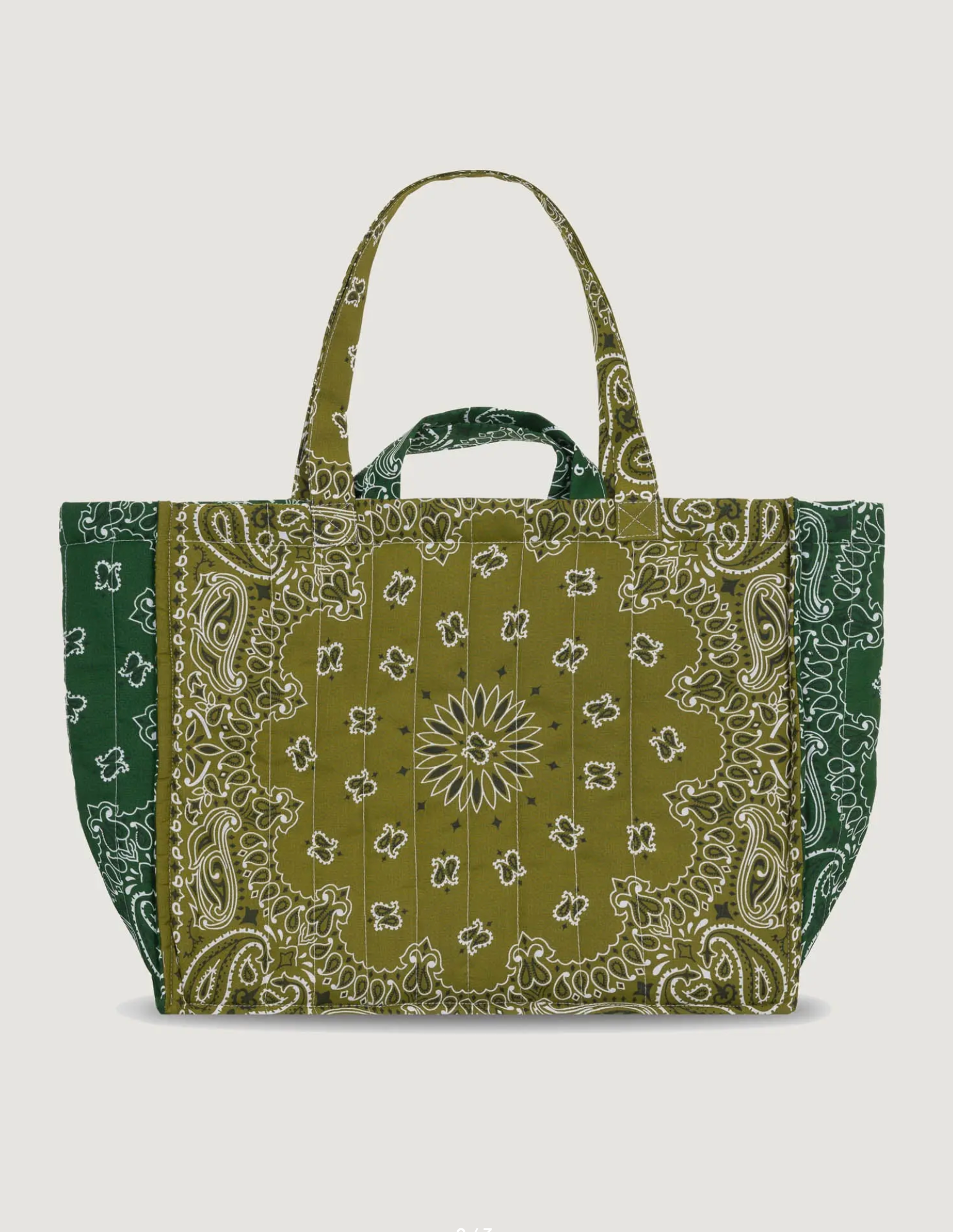 - Dimensions: W 49 x H 39 x D 19 cm / W 19.3 x H 15.3 x D 7.5 in Shoulder strap length: 58 cm / 22.8 inch Hand-carried handle length: 22 cm / 8.6 inch Composition: 100% cotton Bandanas made in the USA. Embroidery made in Paris. Care : Wash inside out or in a bag to avoid damaging the embroidery. Hand wash at 30 degrees without soaking. Do not tumble dry, dry flat in the open air. Our bandanas are handmade. The dye baths may vary slightly from one production to another.
