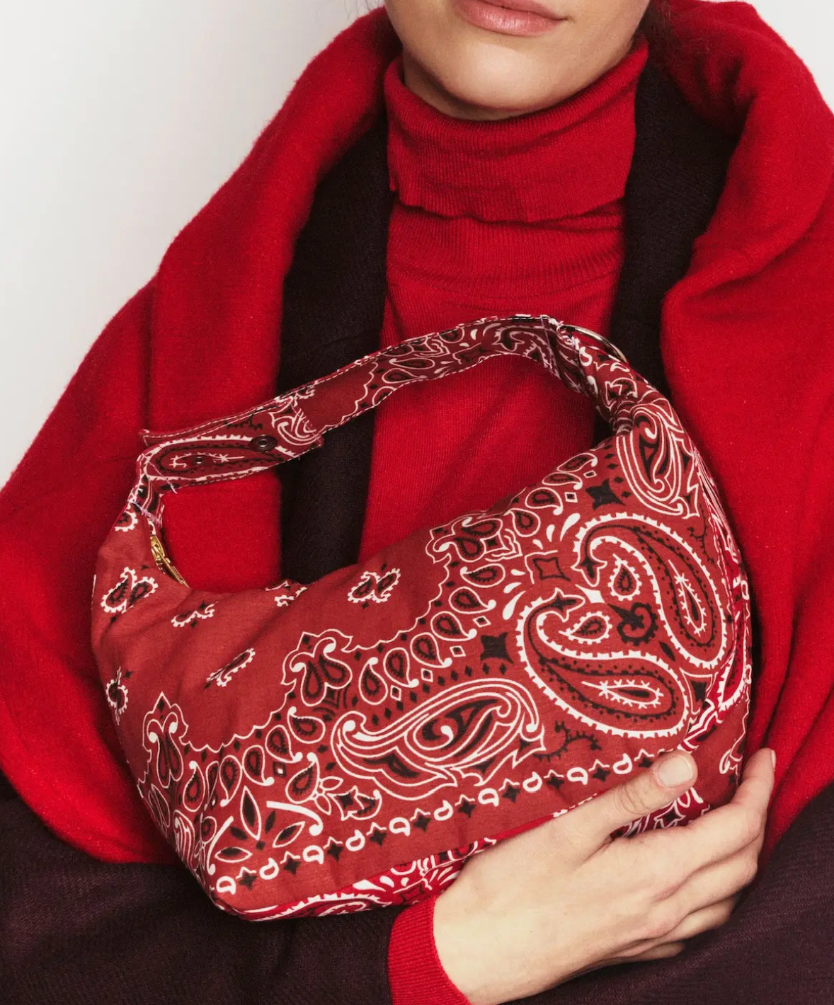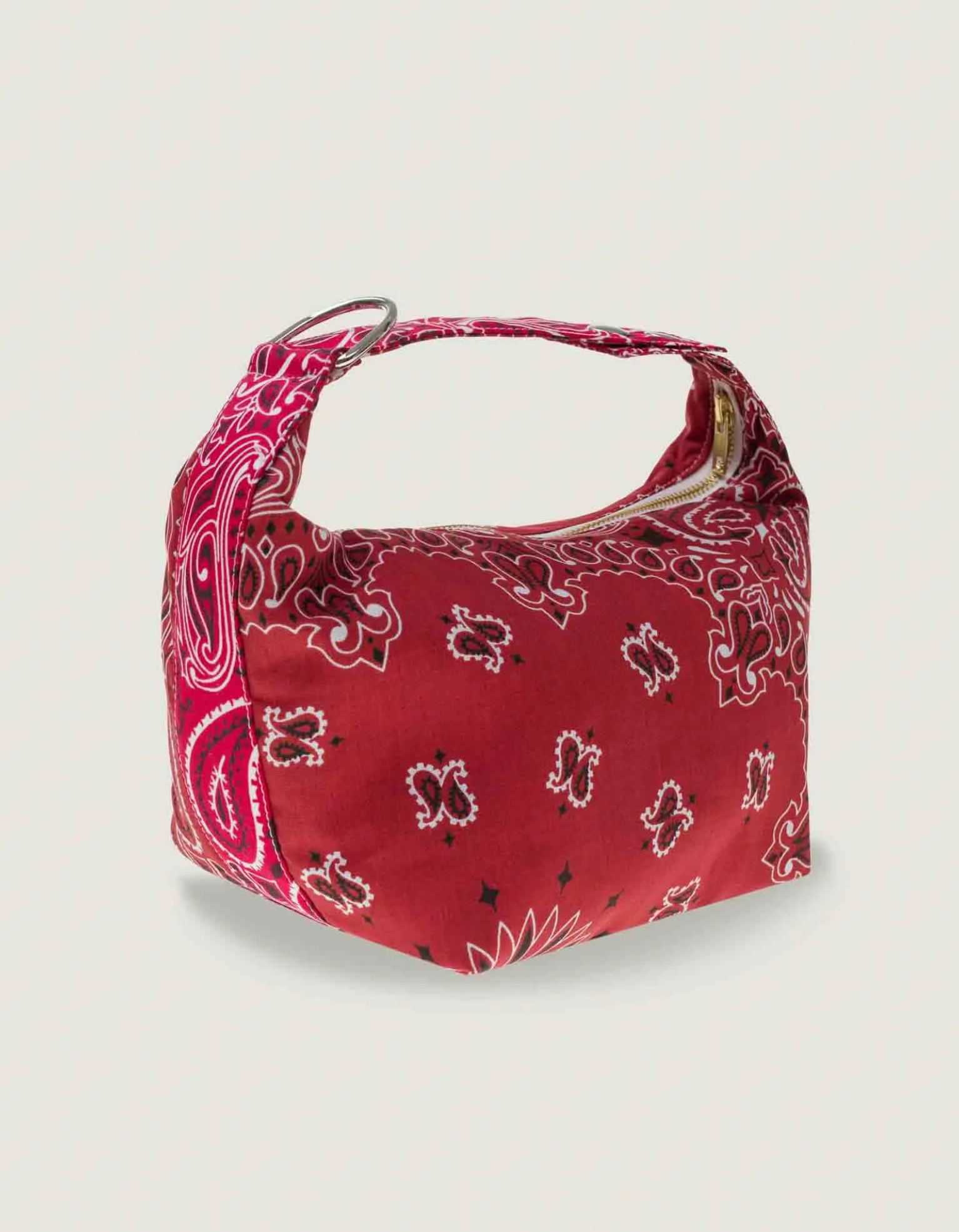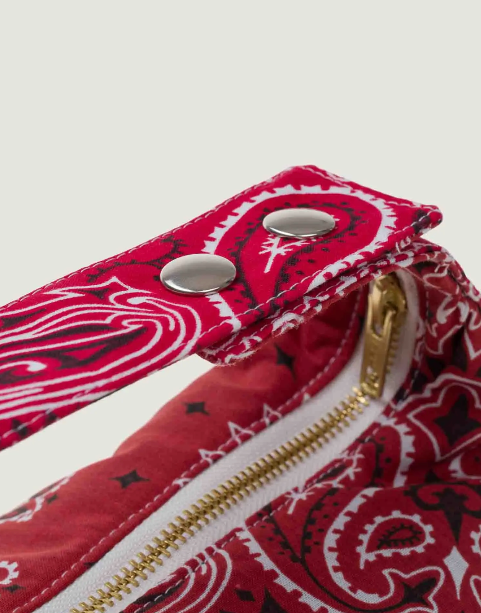 Adjustable handle with 2 snaps. 1 half-moon ring on the handle to add a lucky charm. Zipper closure. Bandana lining. Composition: 100% cotton. Dimensions: H 17 x W 30 cm / 6,7 x 11,8 in. Dimensions of the handle strap: L 22 cm x W 5 cm / 8,6 x 1,9 in. Bandanas made in the USA. Bag made in Europe. Care: Hand wash 30 degrees without soaking. No machine drying, prefer to dry flat in the open air. Our bandanas are handcrafted. Dye baths may vary slightly from one production to another.