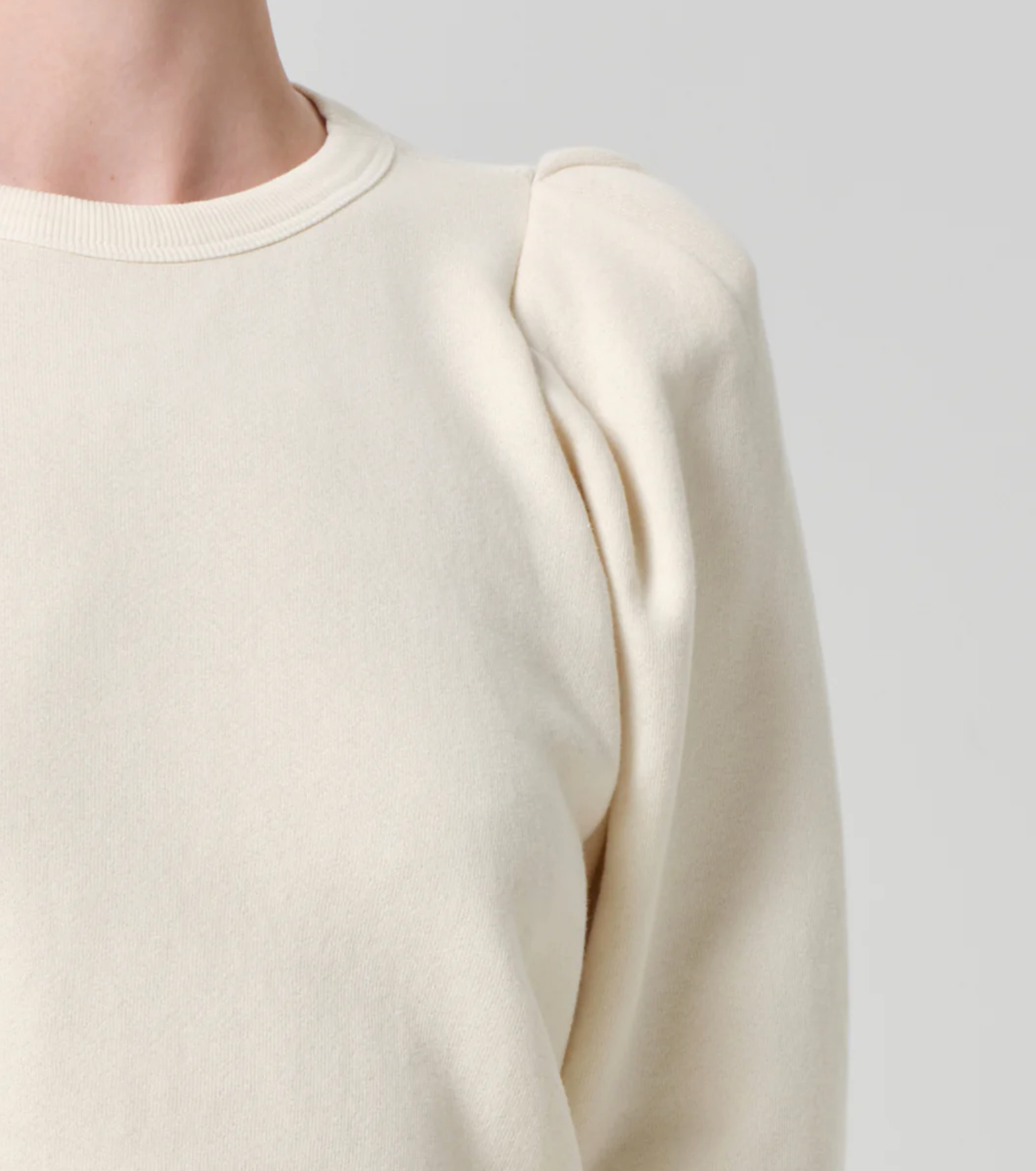 The Pleated Short Sleeve Crew combines soft structure with everyday ease. Crafted from sueded fleece made with regenerative cotton, it offers a luxuriously smooth hand and gently sculpted shape. Pleated sleeves add subtle volume, balancing a modern silhouette with refined comfort.