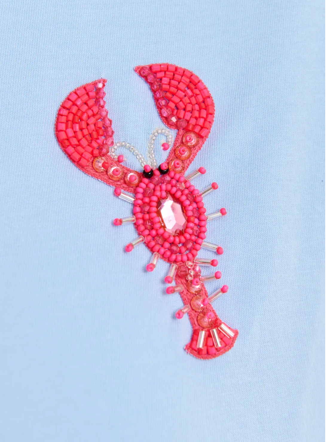 Crafted from soft organic cotton-jersey, this T-shirt features a classic crew neckline and an oversized fit for ultimate comfort. The chest is adorned with a bead-embellished lobster embroidery, making it the claw-some catch your wardrobe needs!