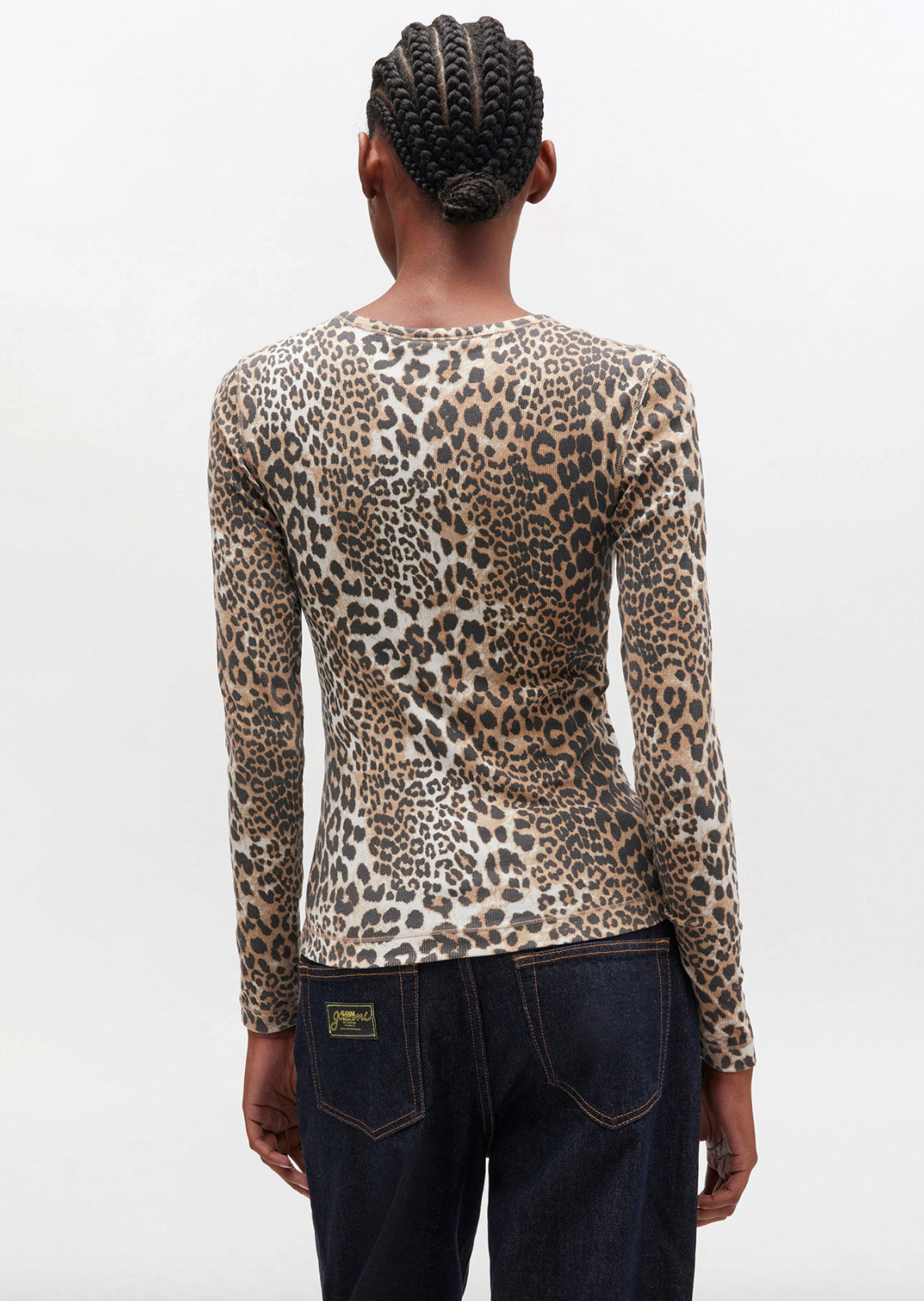 This top features a round neck, long sleeves and a GANNI logo. Slim fit.