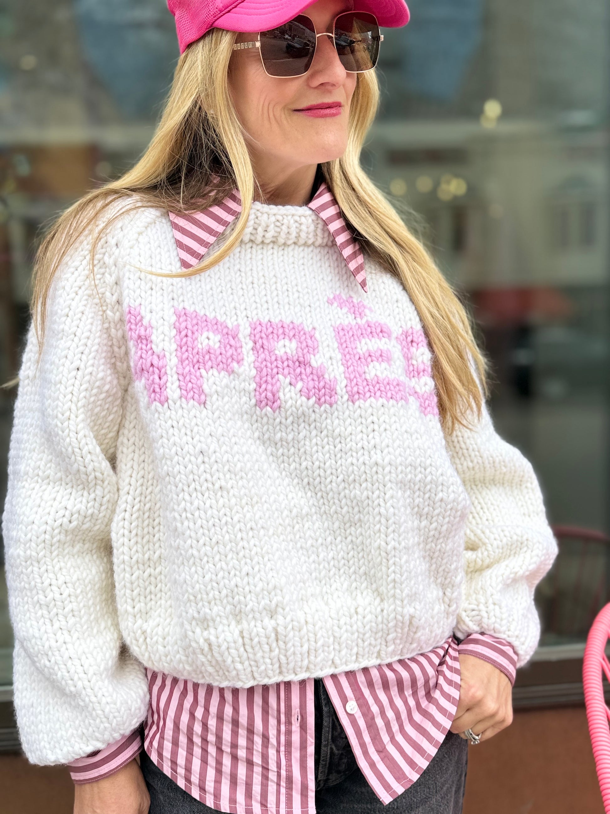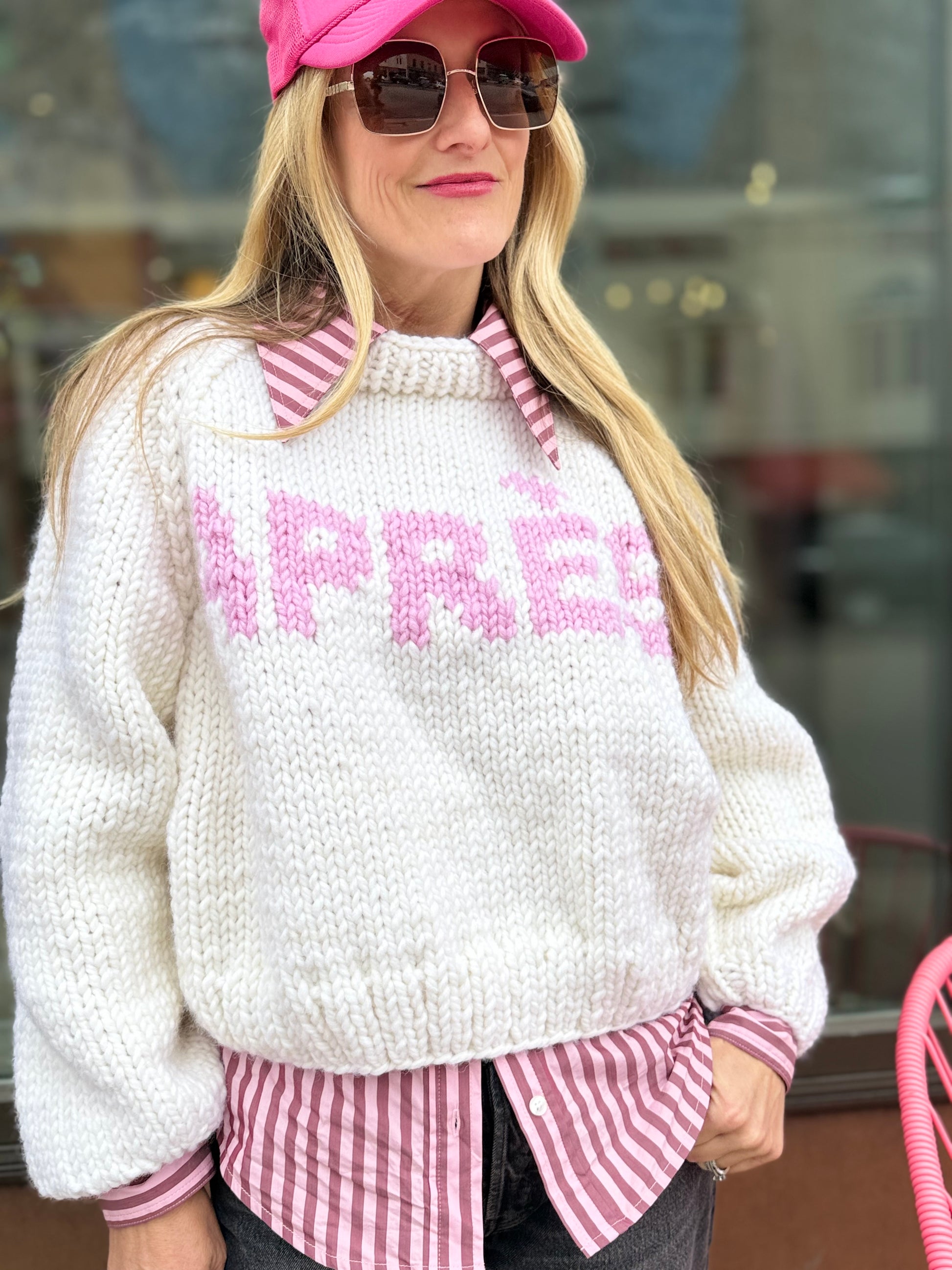 The GOGO classic raglan pullover with the iconic APRES on the upper chest. A flash of modern color coupled with this classic design. Raglan balloon sleeve, mock neck.
