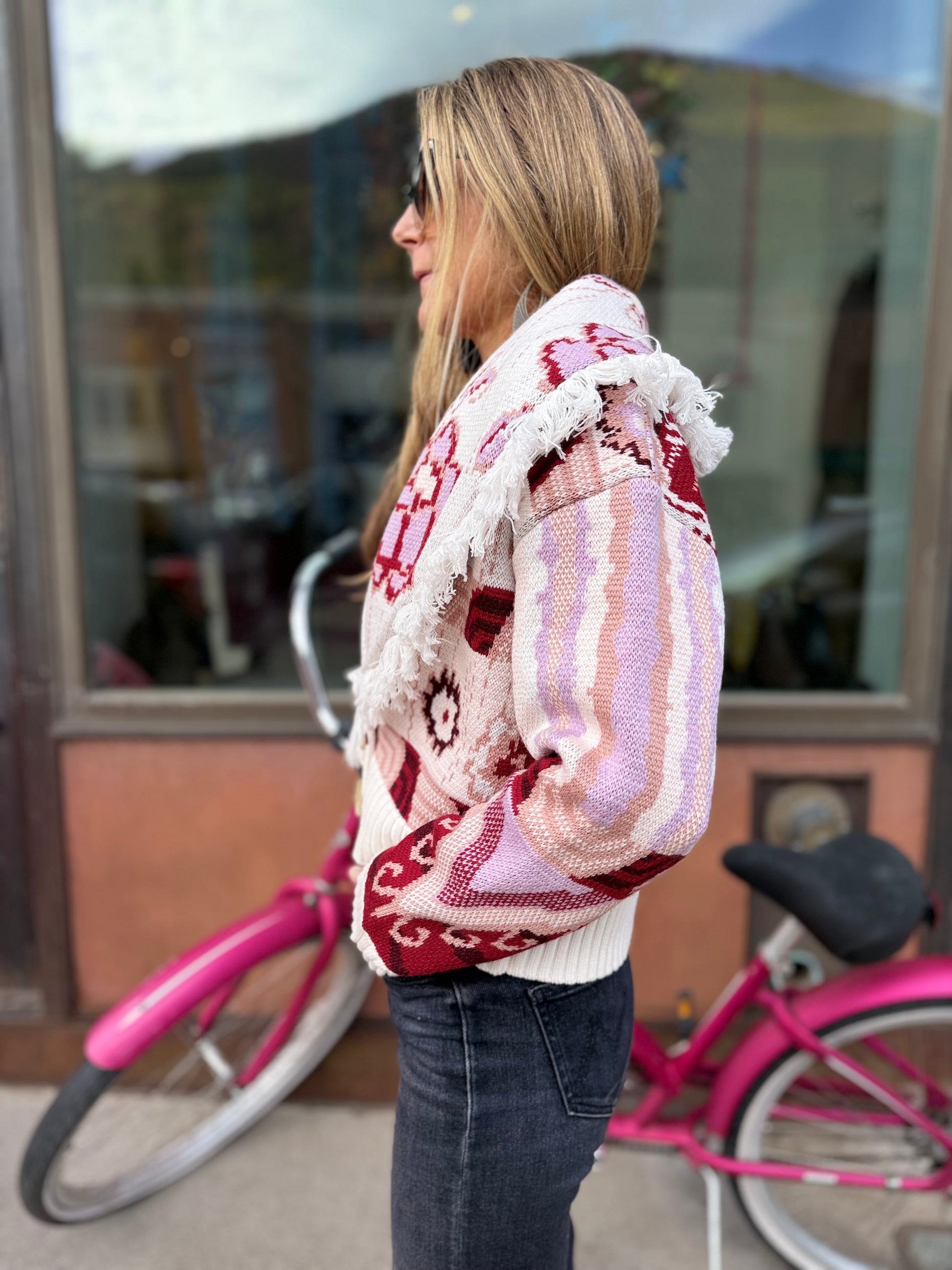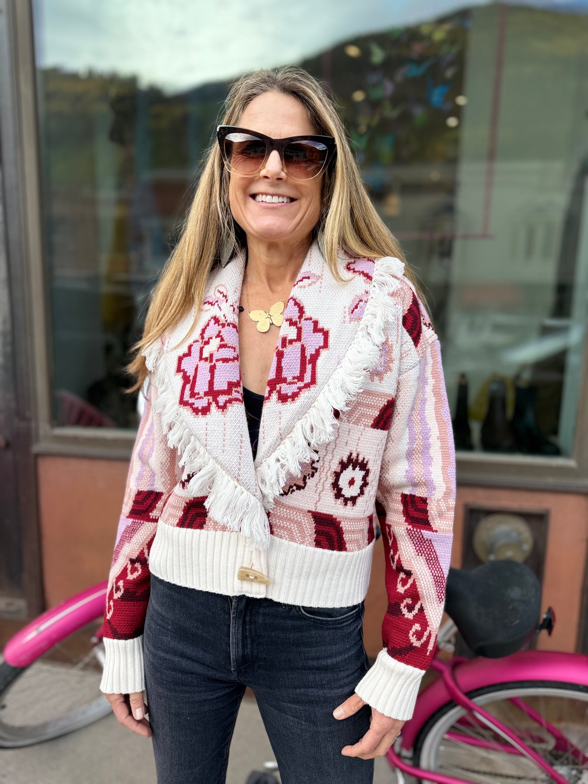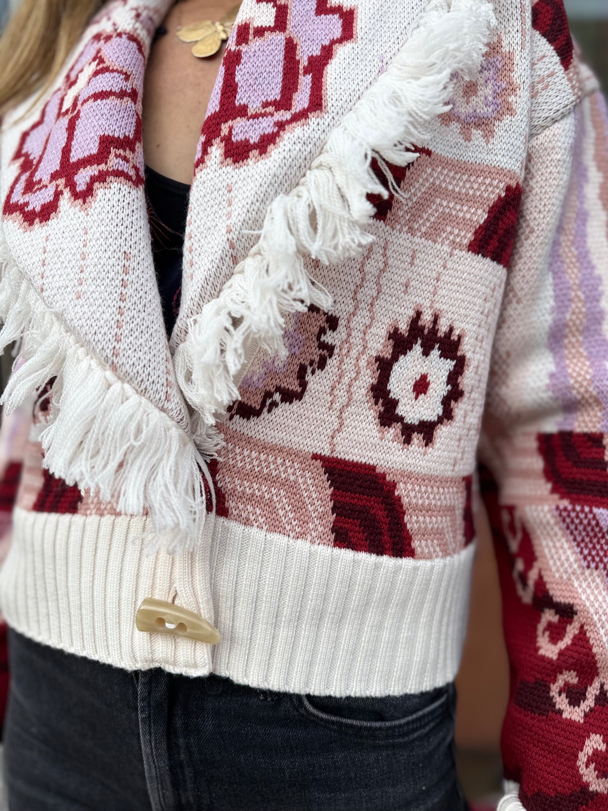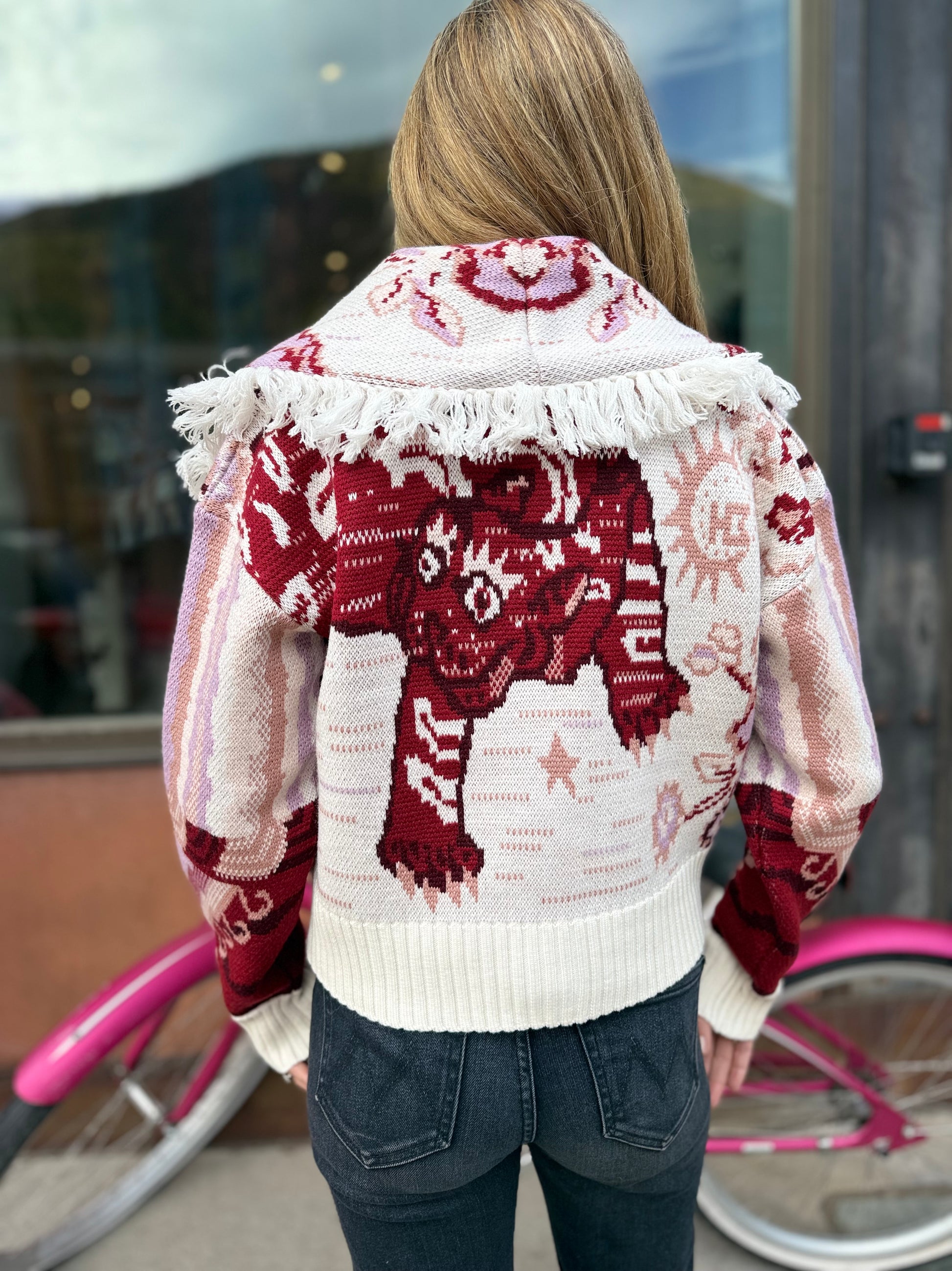 Inspired by an antique book on carpets and celebrating an endangered species, make this your essential seasonal layer with denim and dresses.