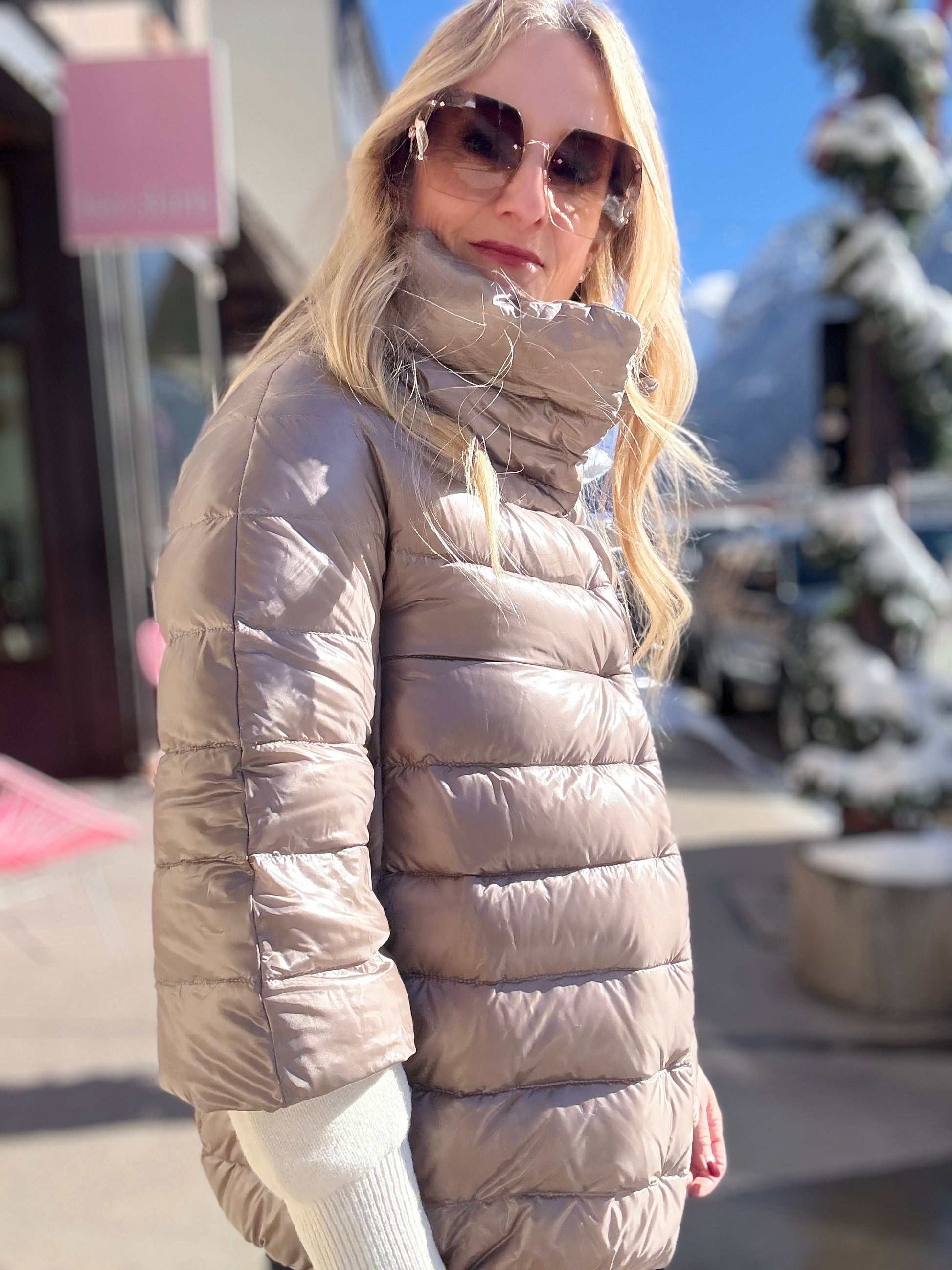 The injected padding in ultra-fine goose down and the silky-effect nylon make the garment extremely lightweight and delicate to the touch. Made in Italy.