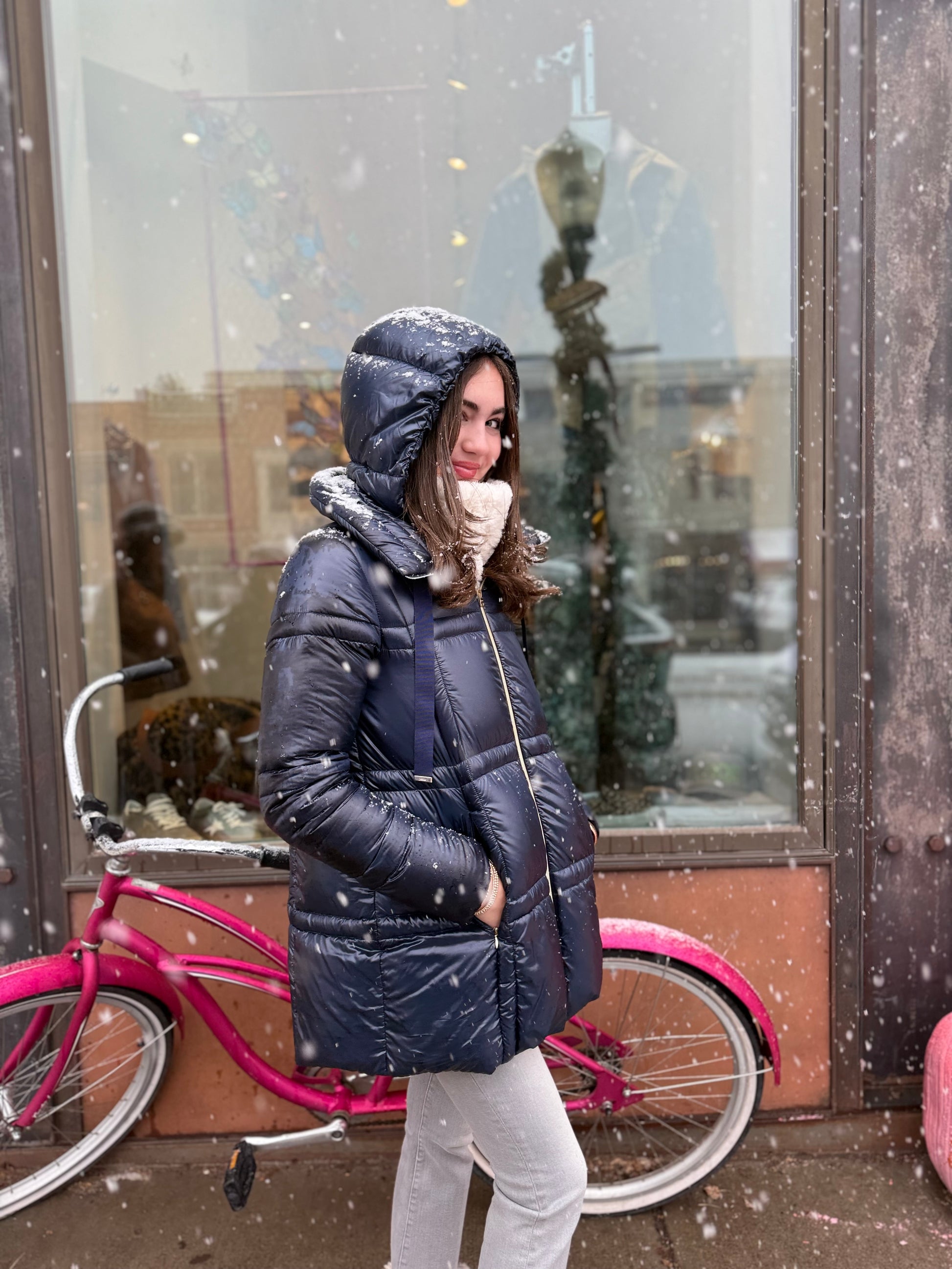 Ultralight mid length square padded jacket with removable hood by Herno.