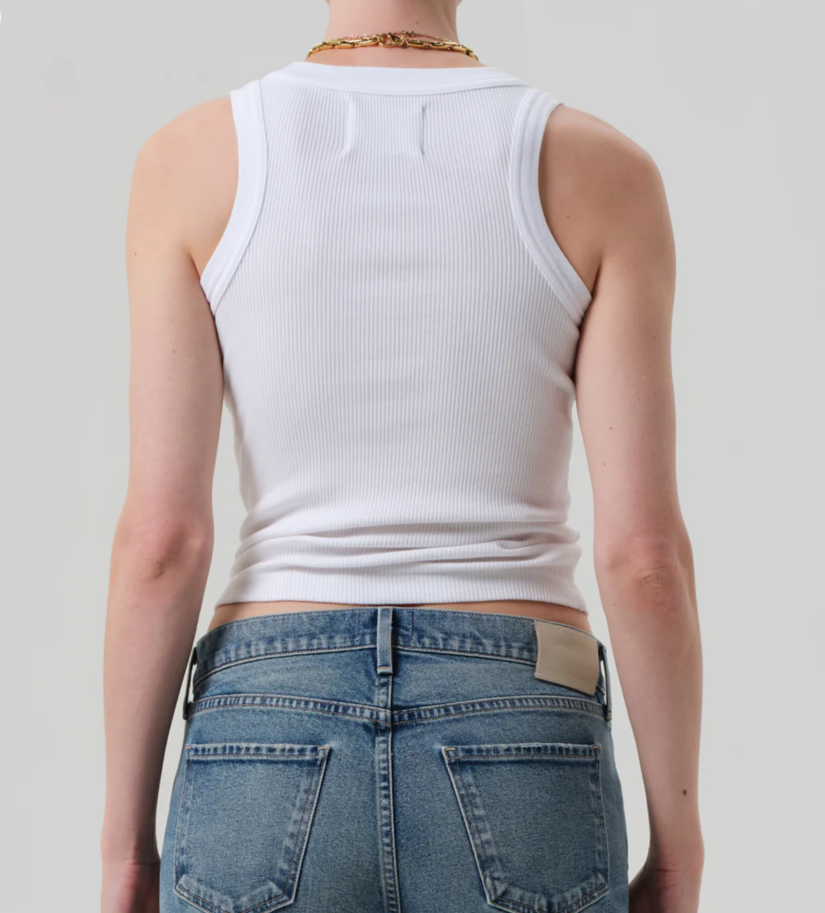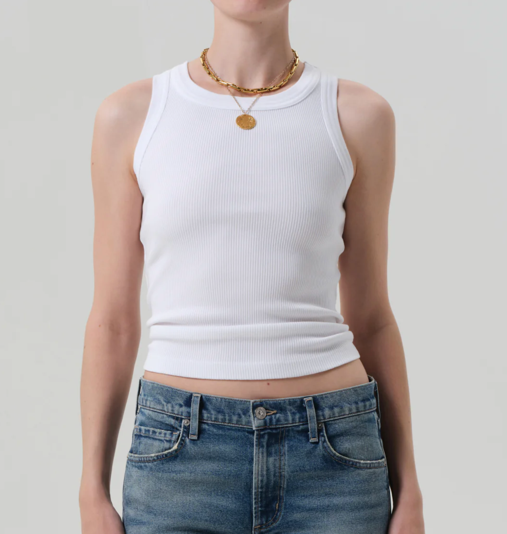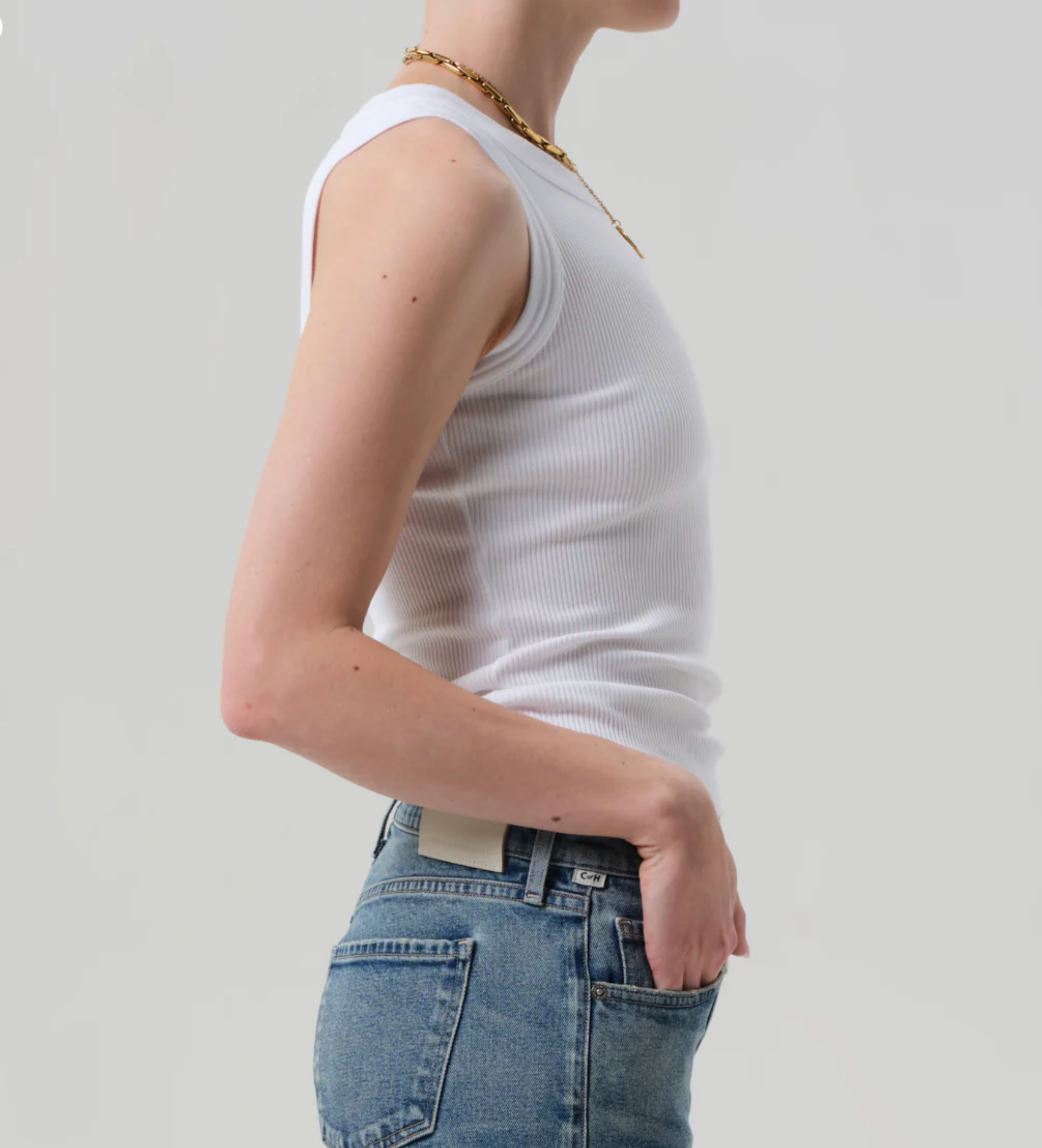 The Isabel Tank is a modern essential, cut in ultra-soft, supportive ribbed cotton with a close, flattering fit. Designed with a high neckline and clean finish, it’s ideal worn solo or layered under structured pieces.