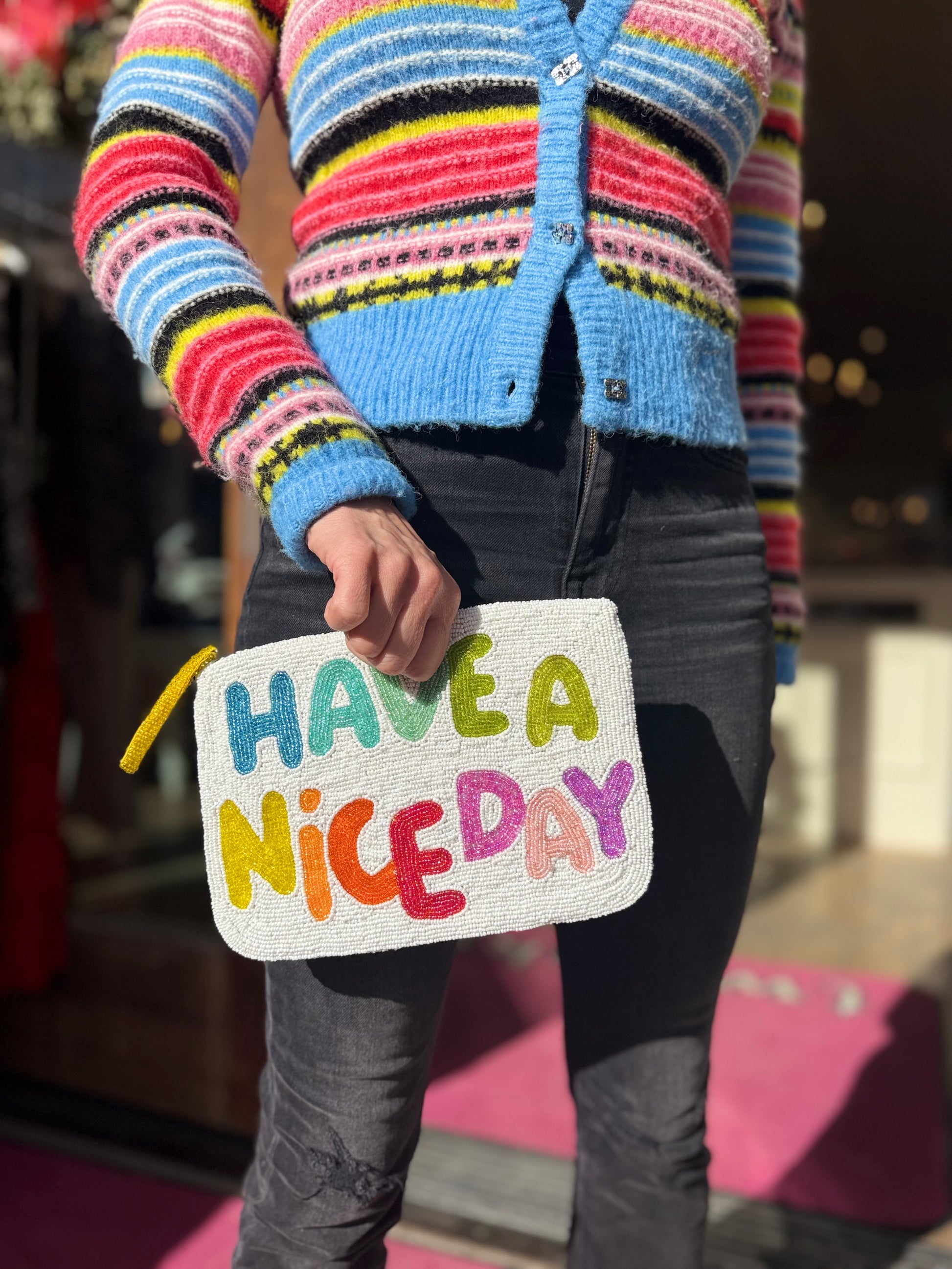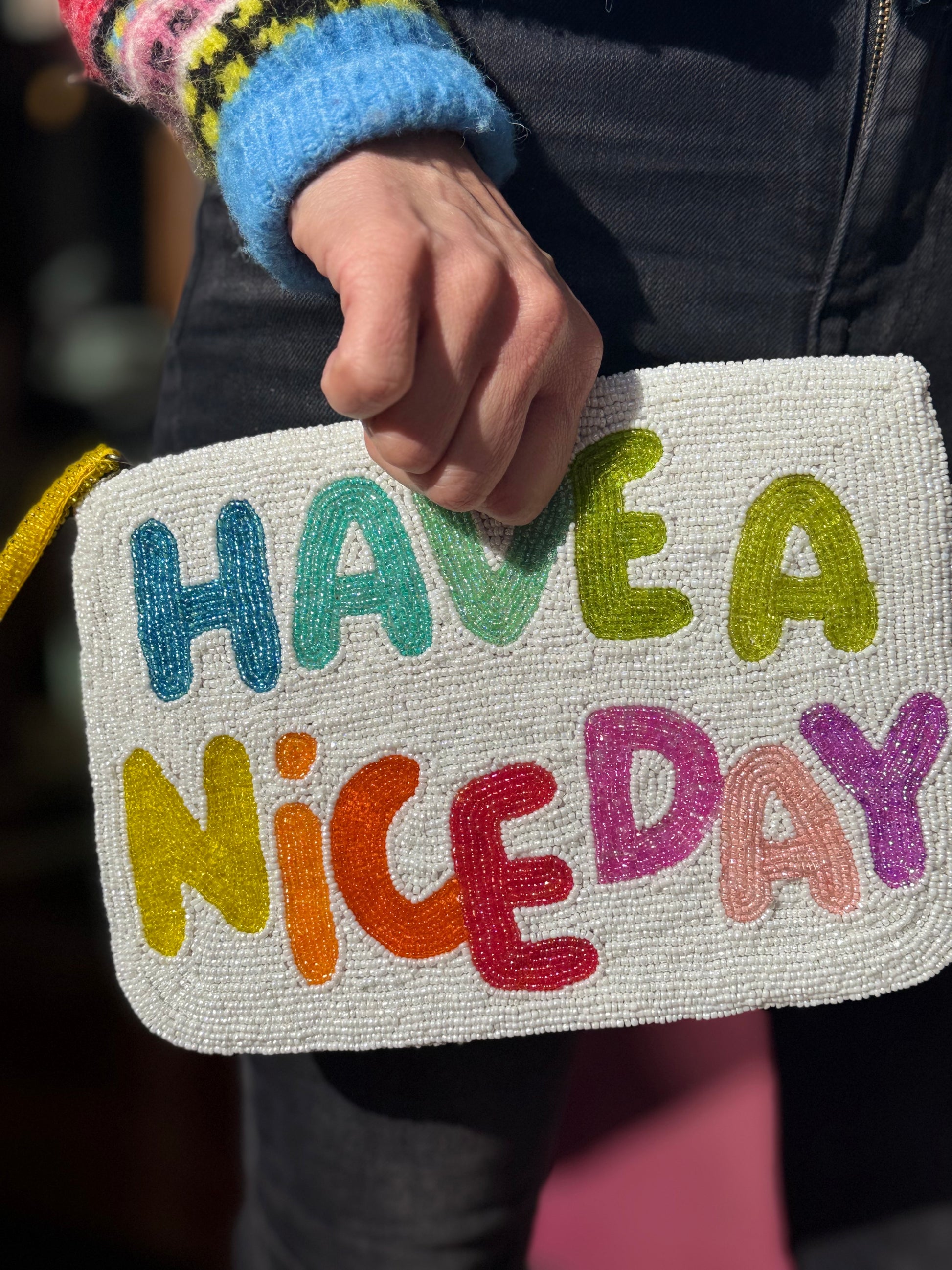 Beaded colorful clutches by The Jacksons. Zipper closure with beaded pull. Handmade in Bangladesh.
