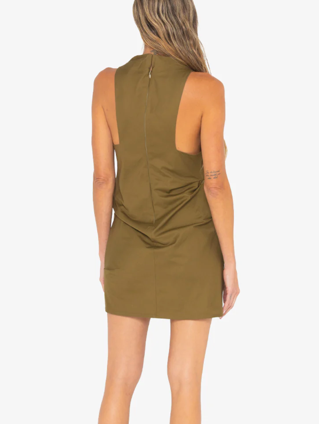 Cotton cowl neck mini dress with T back zipper closure by Just Bee Queen.