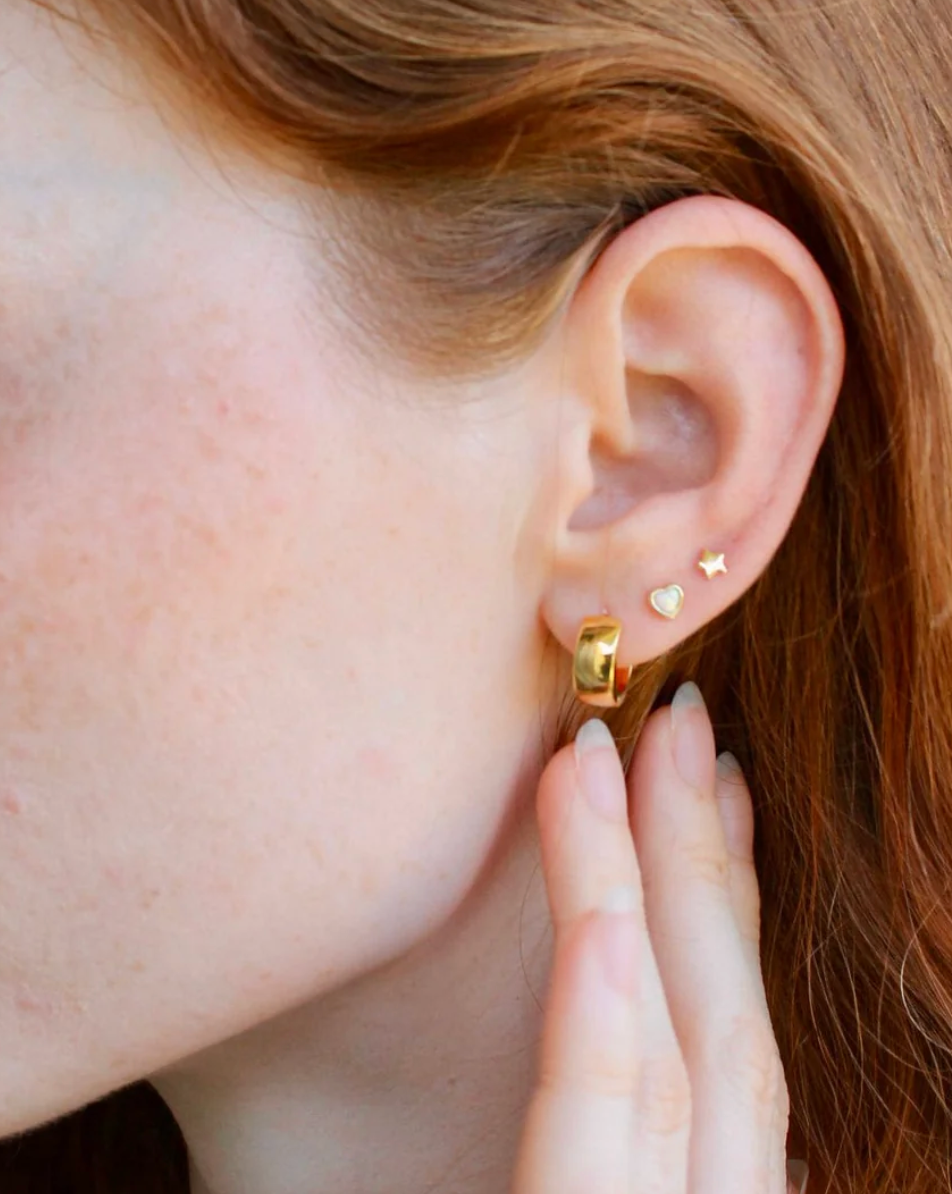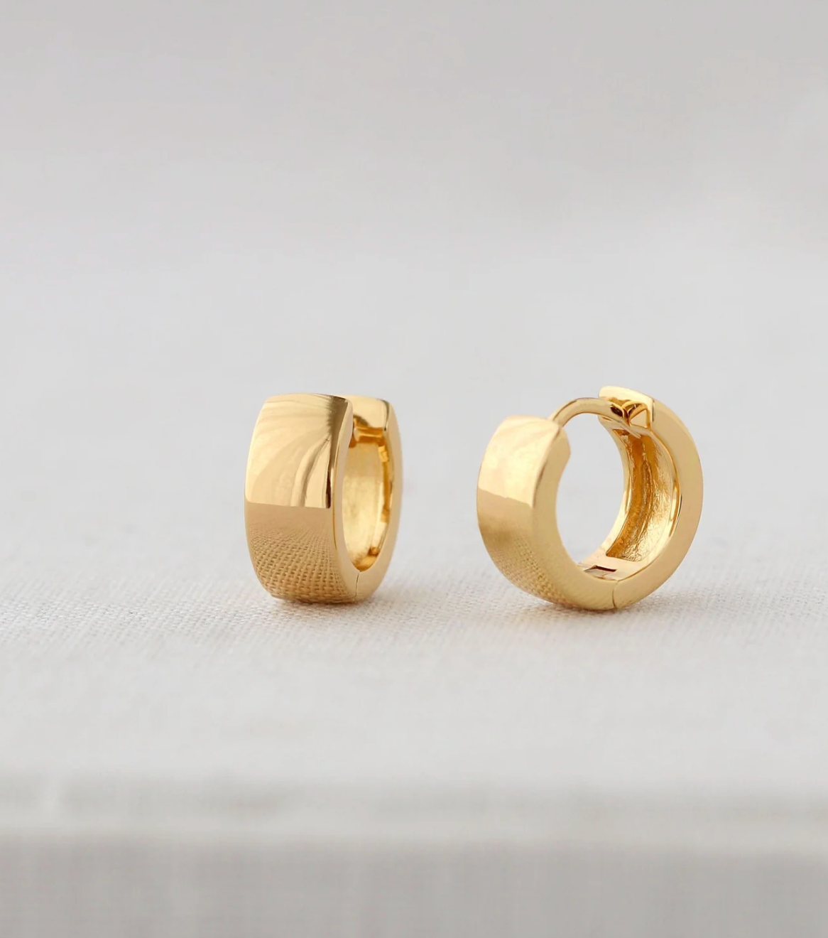 Classic style hoop with hinge for easy opening and closing. The perfect minimalist huggie hoop earring that hugs your ear.