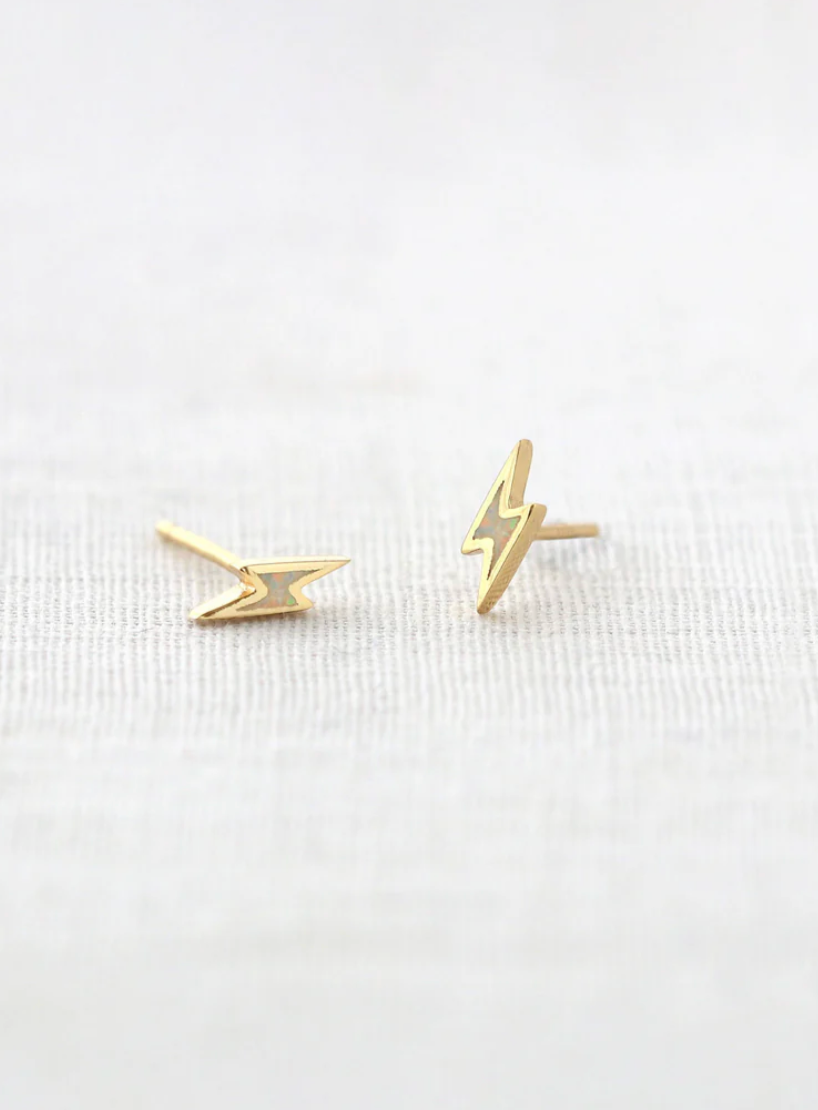 These opal lightning bolt studs add a jolt of shimmer to your ear stack. Made with 18K gold vermeil and inlaid with glowing opals, they deliver just the right mix of bold and dainty. At 7mm tall, they’re small but mighty.