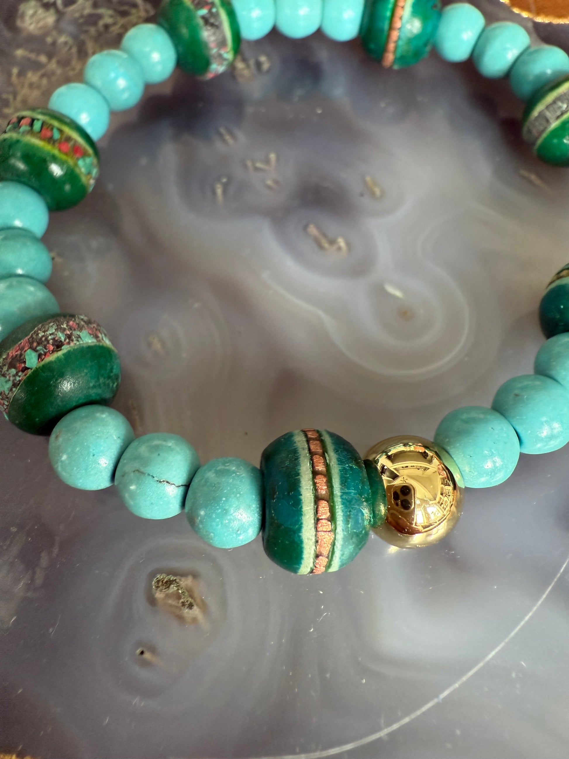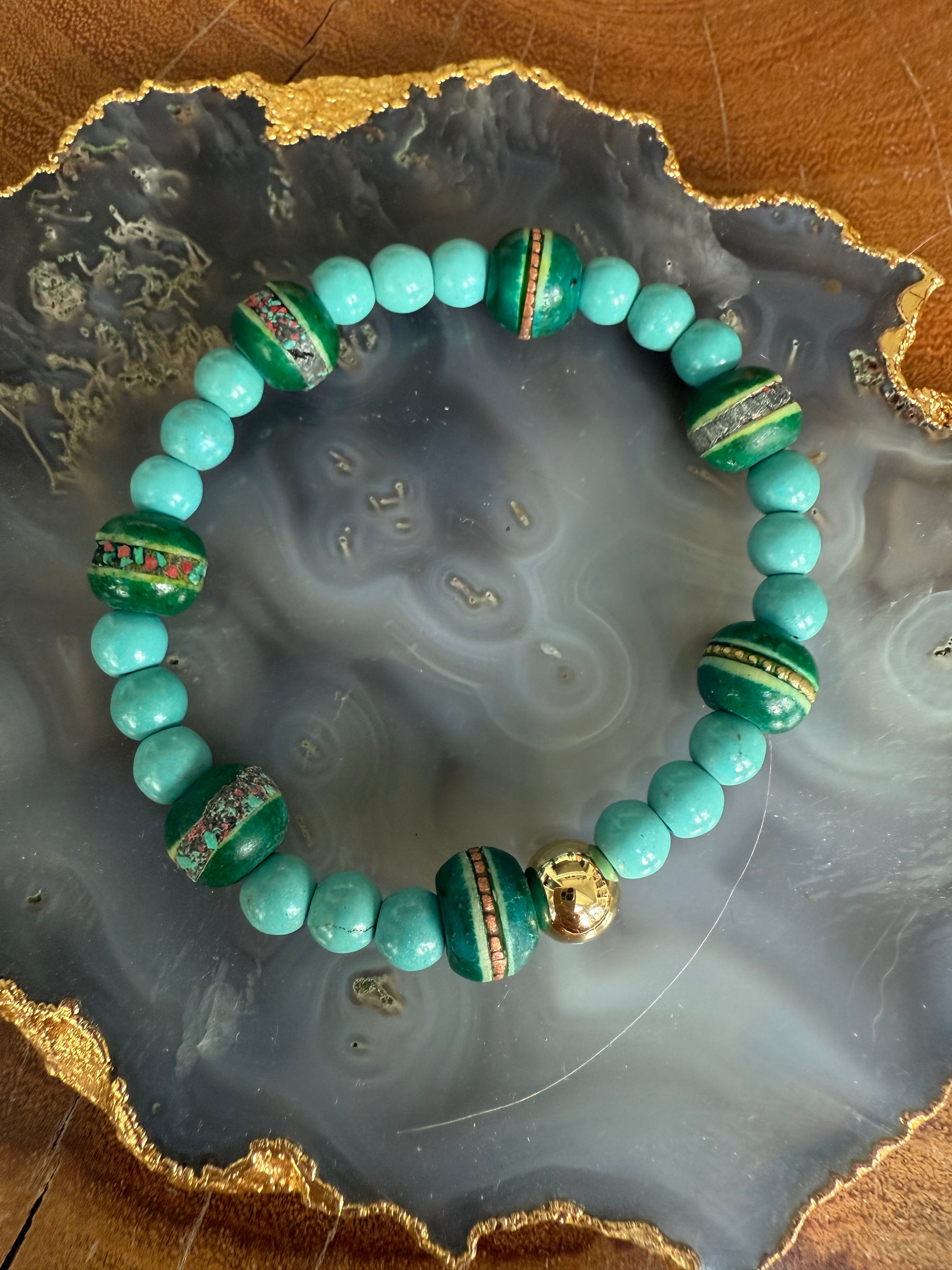 Lauren Amble Turquoise glass Tribal bead Bracelet