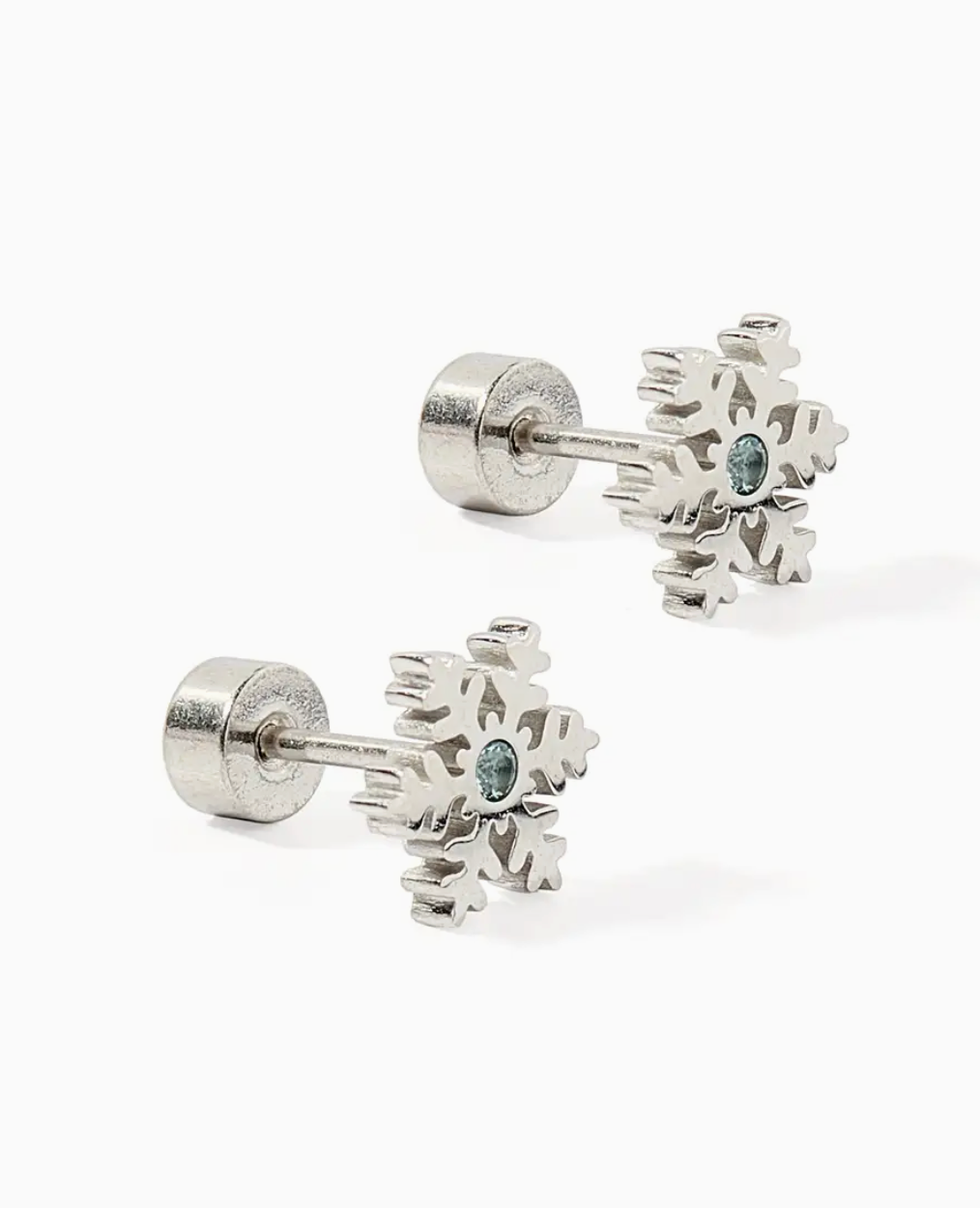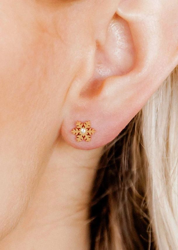 Style Details: * Shape of a snowflake in gold * Blue stone center * 8mm size Why You’ll Love It: * Waterproof and durable for everyday wear * Secure screwback design for a snug, comfortable fit * hypoallergenic and nickel-free, safe for sensitive ears * Adds a unique, stylish touch to any look * This product has been tested by QIMA Testing Limited and passed ASTM F2923-20, the Standard Specification for Consumer Product Safety for Children's Jewelry. This certification confirms that these pieces are nickel-safe, corrosion-resistant, and hypoallergenic
