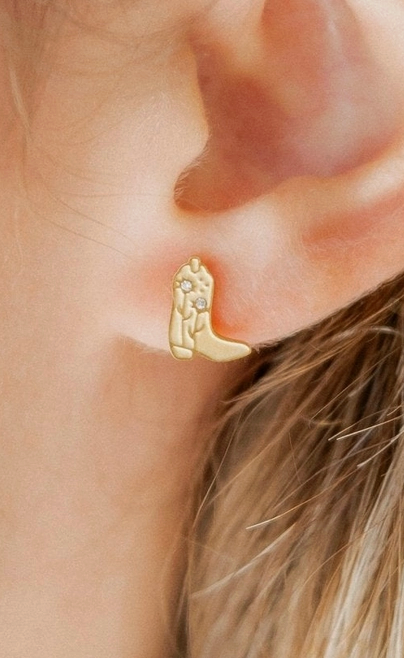 Features: * 10mm cowgirl boot design with CZ detailing * Screwback earrings for a secure fit * hypoallergenic and safe for sensitive ears * Lightweight and comfortable for all-day wear * Part of the Petite Paloma collaboration * This product has been tested by QIMA Testing Limited and passed ASTM F2923-20, the Standard Specification for Consumer Product Safety for Children's Jewelry. This certification confirms that these pieces are nickel-safe, corrosion-resistant, and hypoallergenic