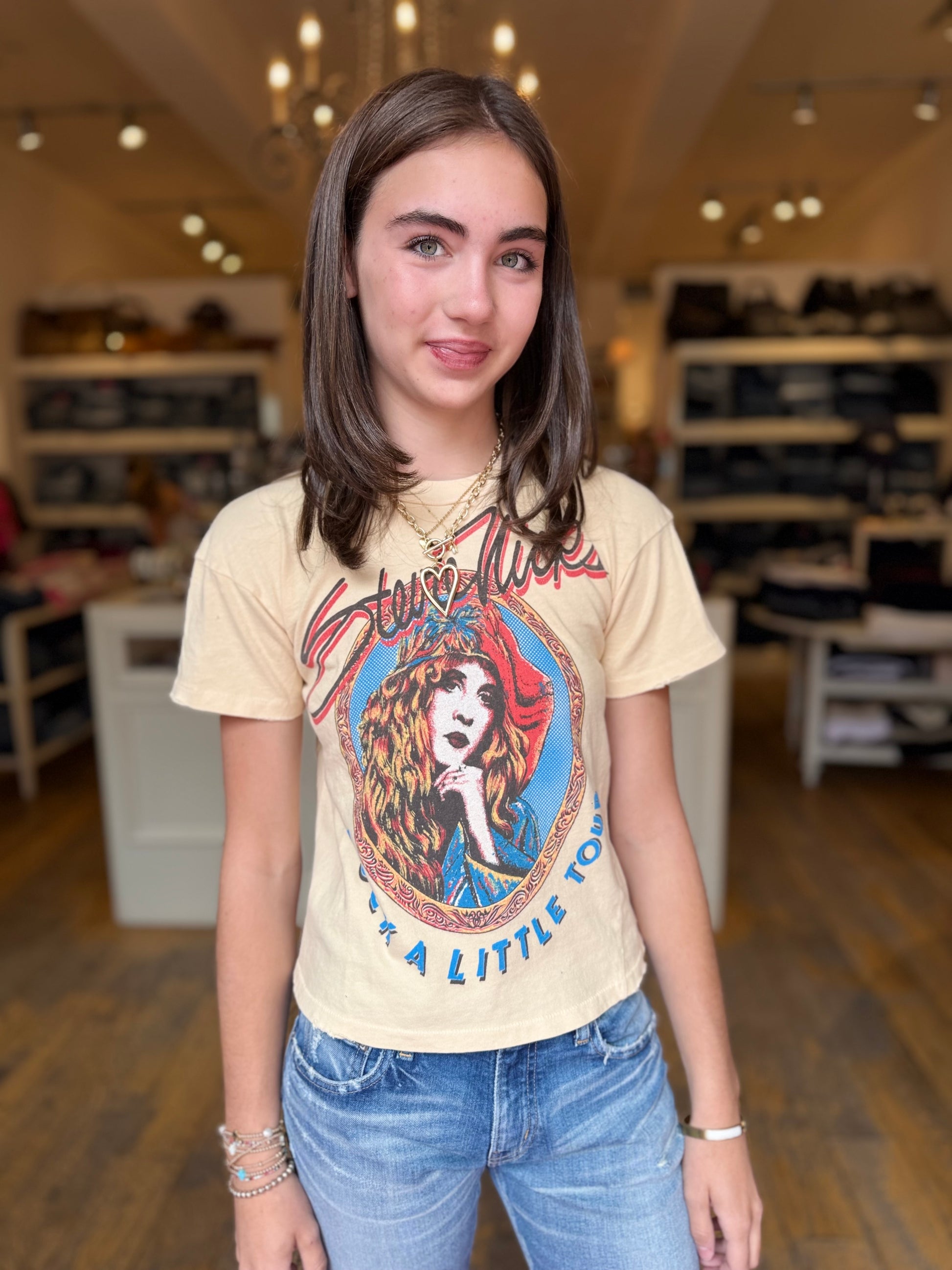 UNIQUE DISTRESSING THROUGHOUT THE BODY AND PRINT.