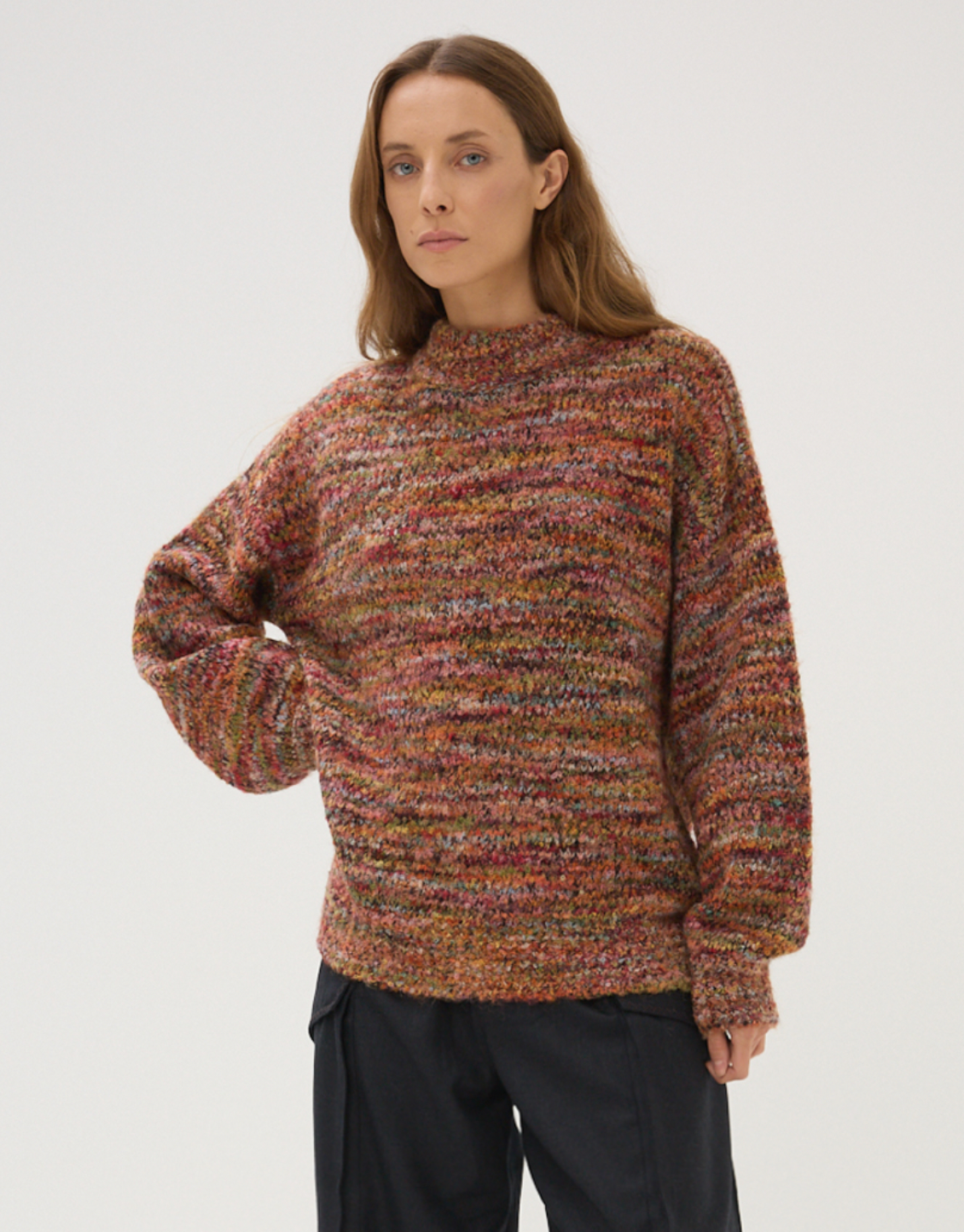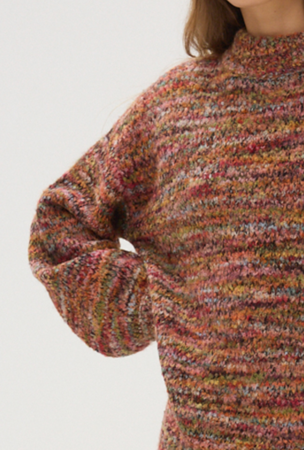 Boucle knit multi color crew neck sweater.