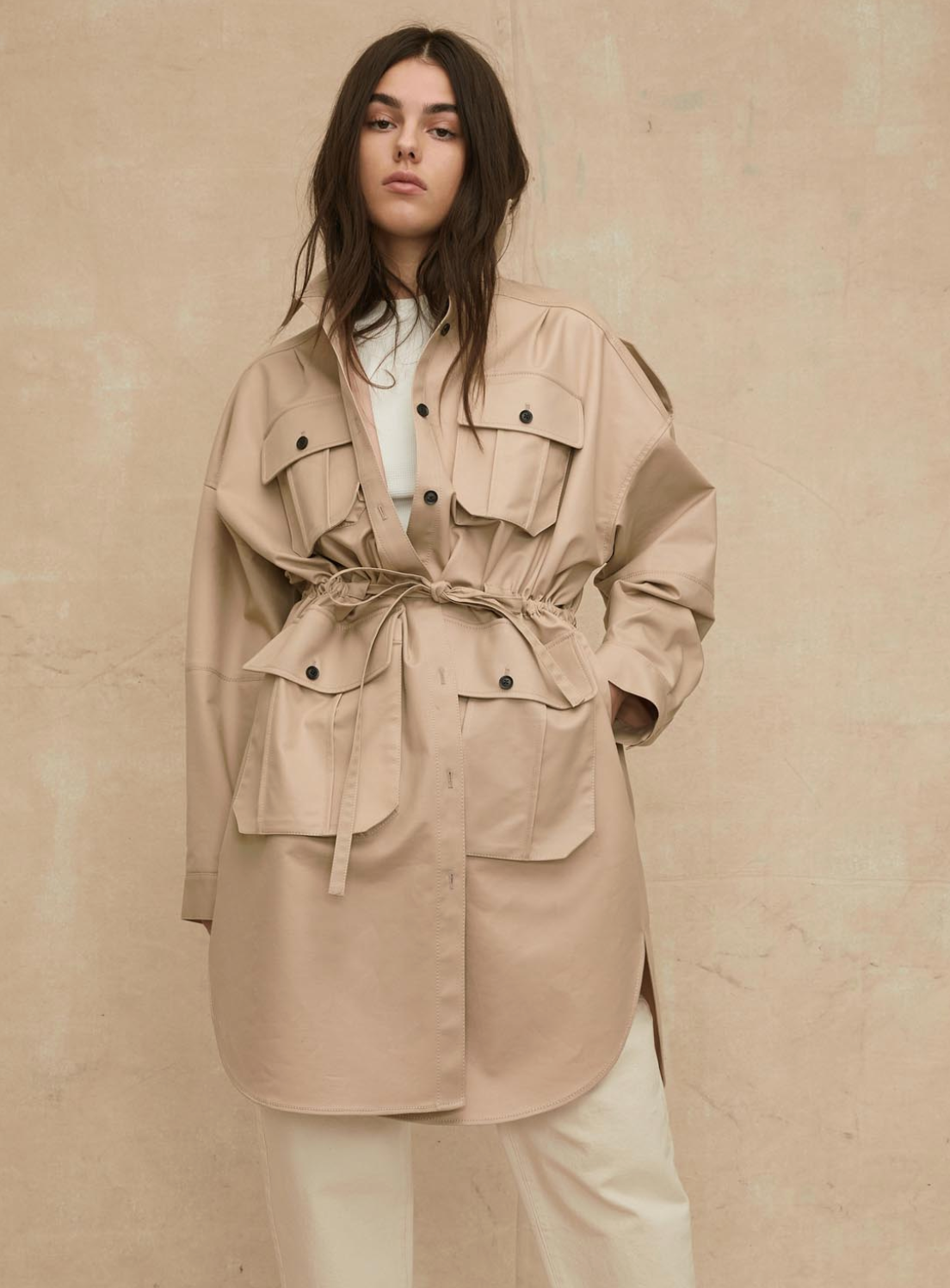 Utility jacket in crisp canvas cotton with tie waist and button pockets by Marissa Webb.