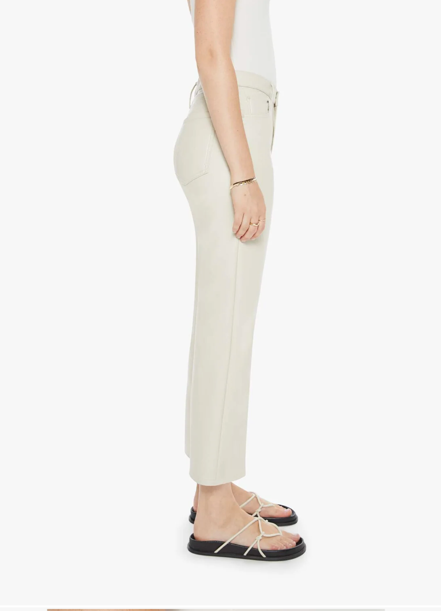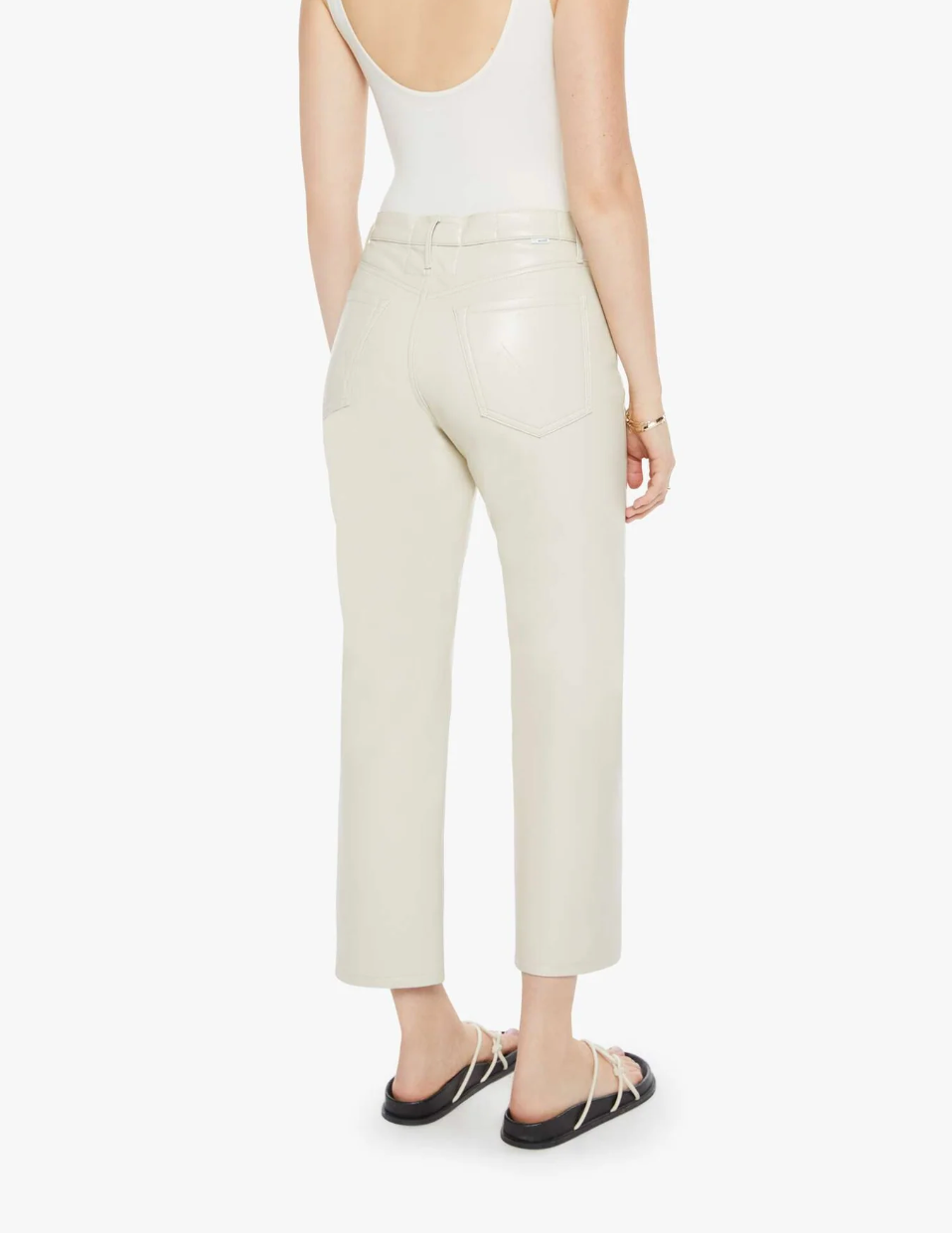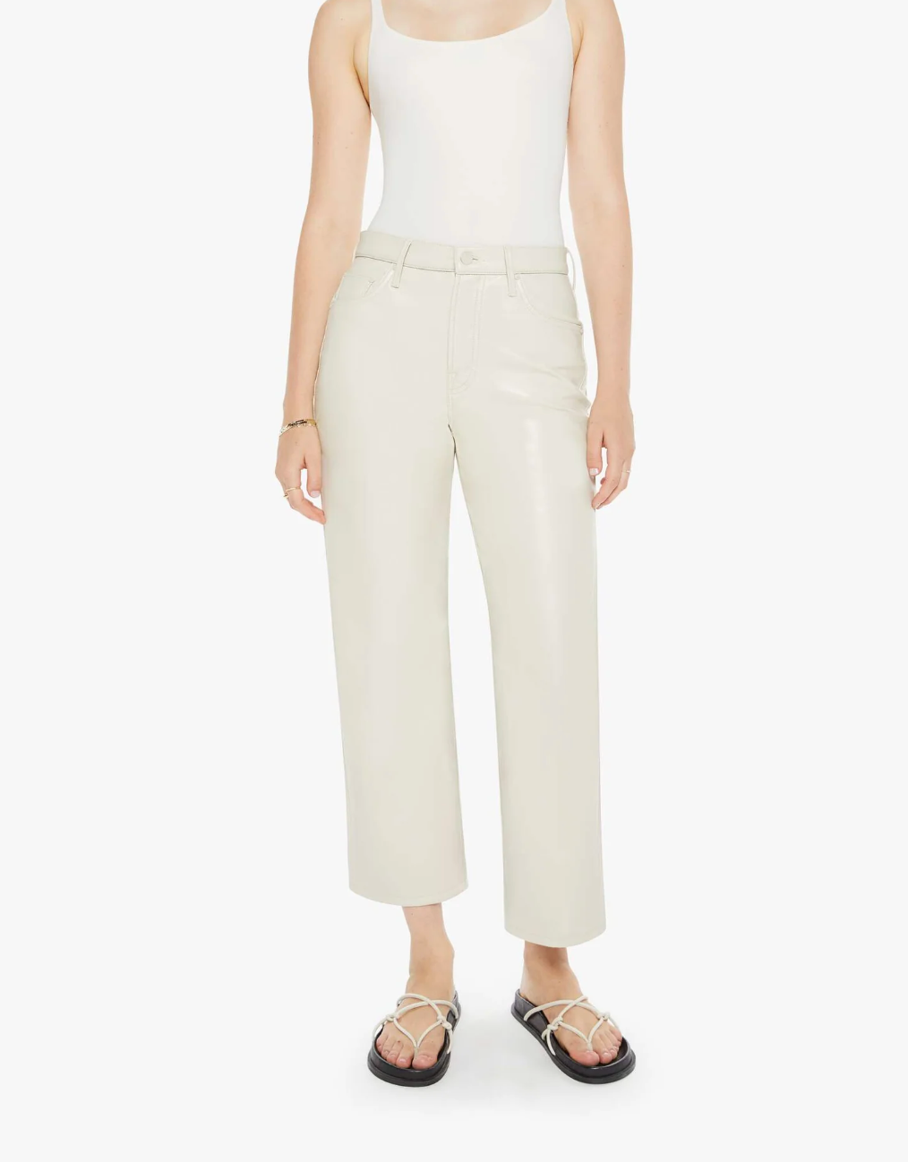 High-waisted pants with a wide straight leg, zip fly and an ankle-length inseam with a clean hem. Made from a blend of recycled leather, the pants are designed in cream with tonal hardware.