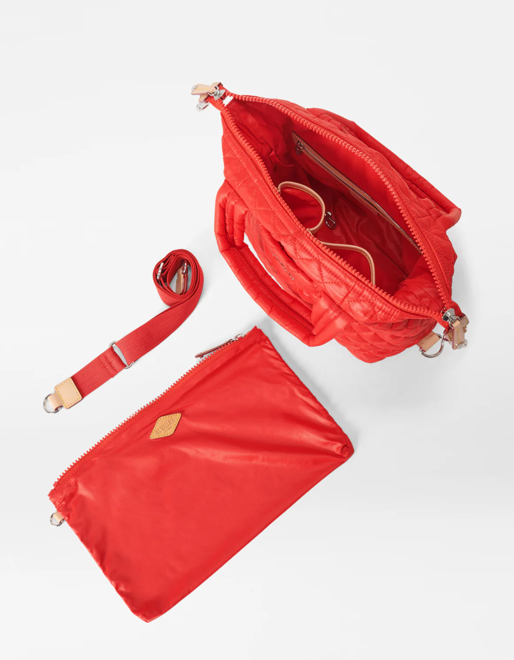 - Detachable, adjustable nylon crossbody strap