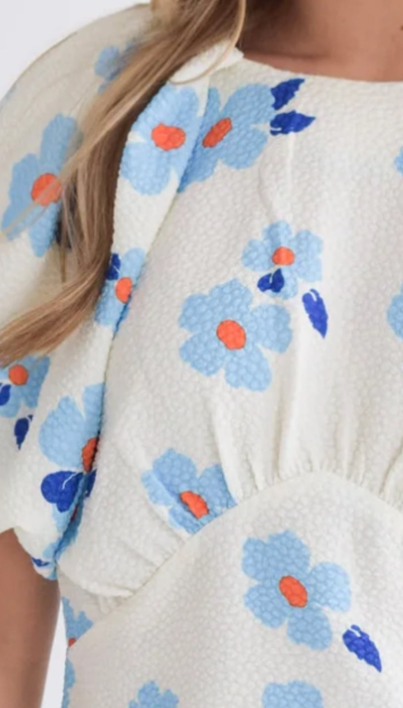 Introducing the Calla Top in Bubble Floral, an all-new style from Never A Wallflower that’s perfect for your spring wardrobe. This elegant top features elbow-length bubble sleeves and a classic crew neckline for a fresh and feminine silhouette. The relaxed bust transitions into tailored details at the waist, creating a flattering and structured look. Adorned with a delicate white and baby blue floral print, this top is both timeless and versatile. Pair it with your favorite bottoms for an elevated spring essential that’s perfect for any occasion.