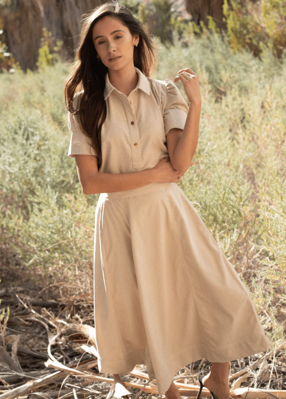 A Line faux leather pin dot skirt by Never A Wallflower. Pull on skirt with elastic back and flat front. Pair with the Everything Top sold separately for a complete look.