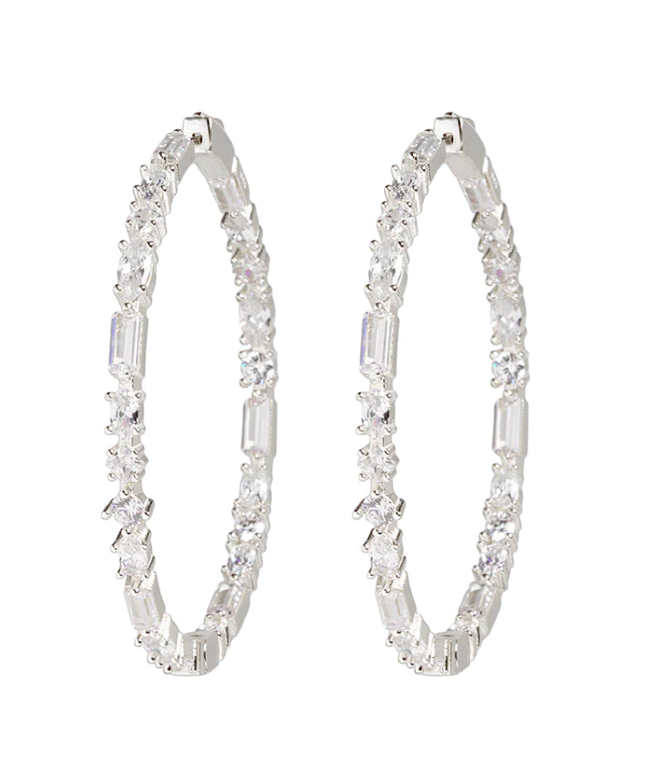 These updated chic hoops are fresh and seductive. The combination of the various shape stones really add to the uniqueness.