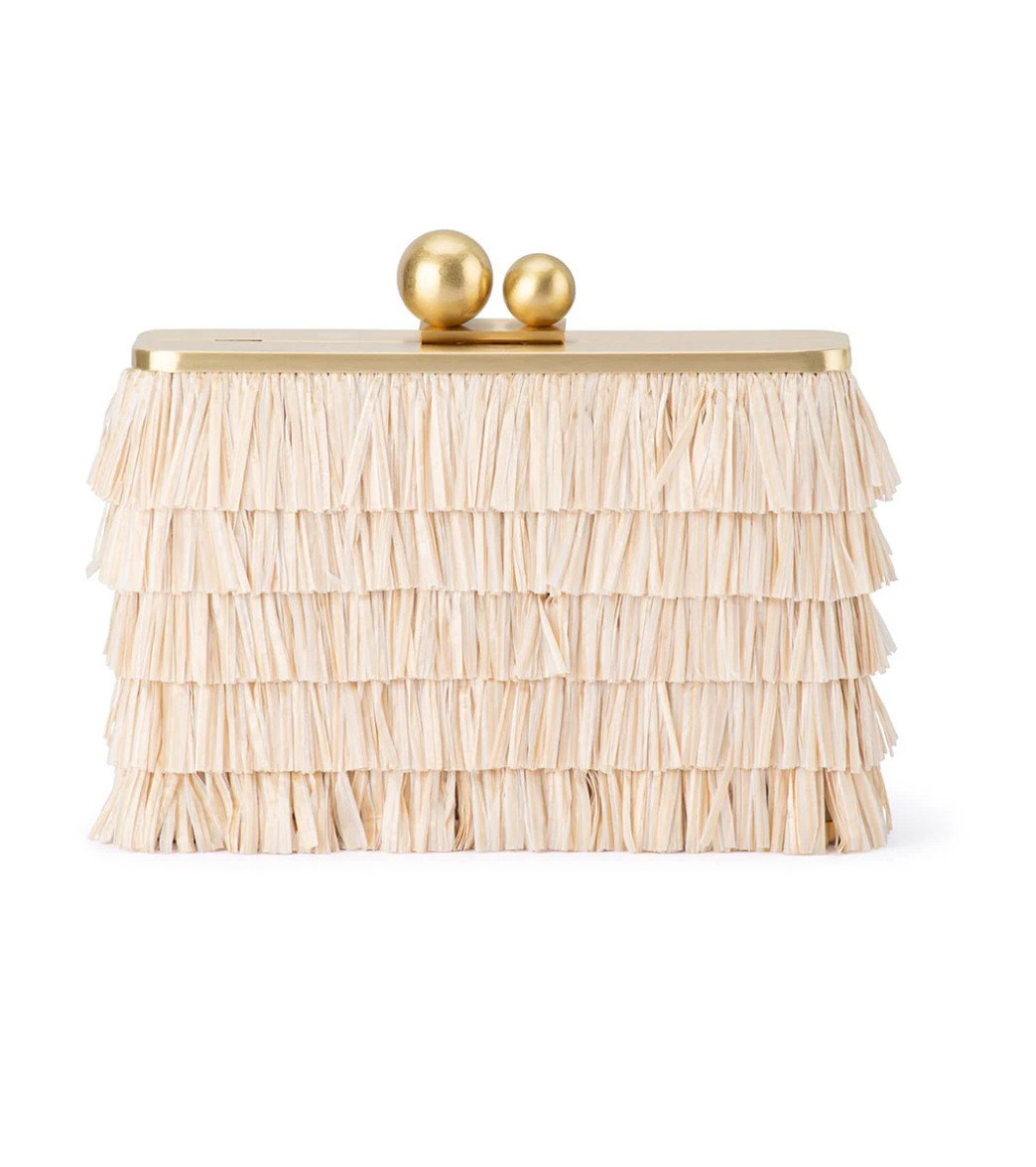 Flaunt this season's fringe trend in the most fun way possible with the CARLITA Fringe Clutch Bag. This bag features layers of natural raffia fringing and brushed gold tone hardware to up the luxe factor.