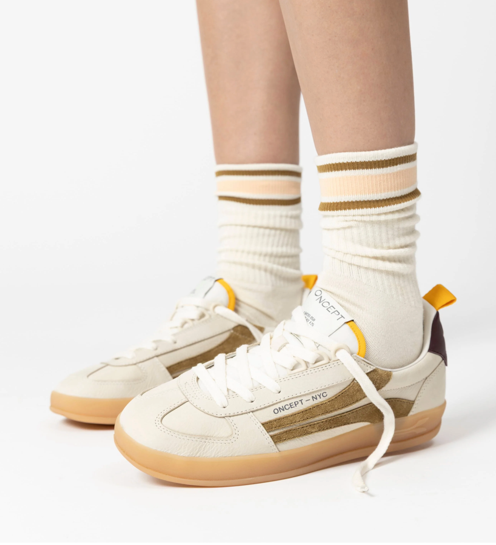 The Oncept Fez court sneaker is designed for comfort and style. Suplpe calf leather and honey translucent soles. Memory foam contoured removable footbed.