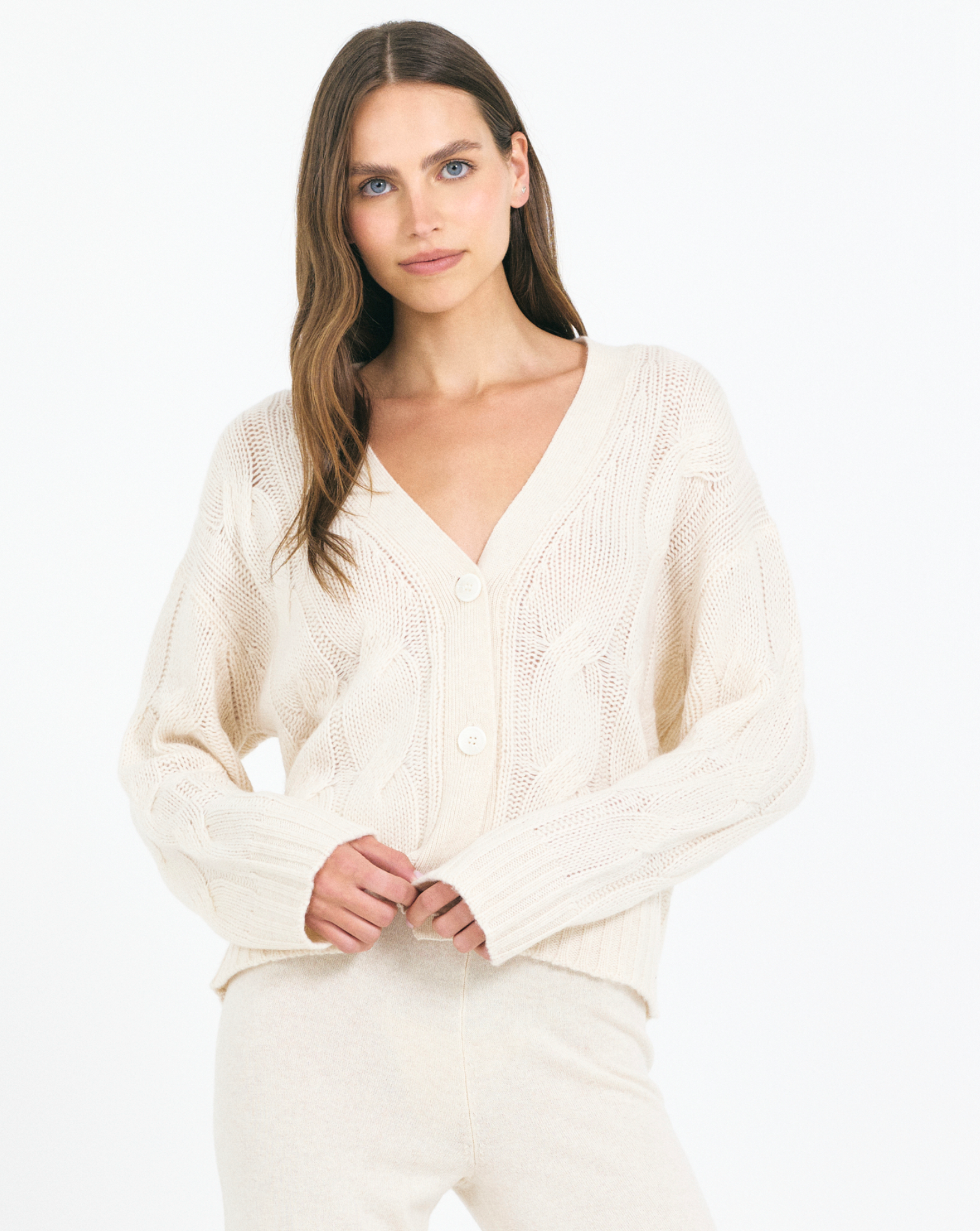 This classic cardigan in indulgent cable cashmere is a timeless silhouette versatile enough for every look. This medium weight cardigan will be the perfect layering addition to your closet.