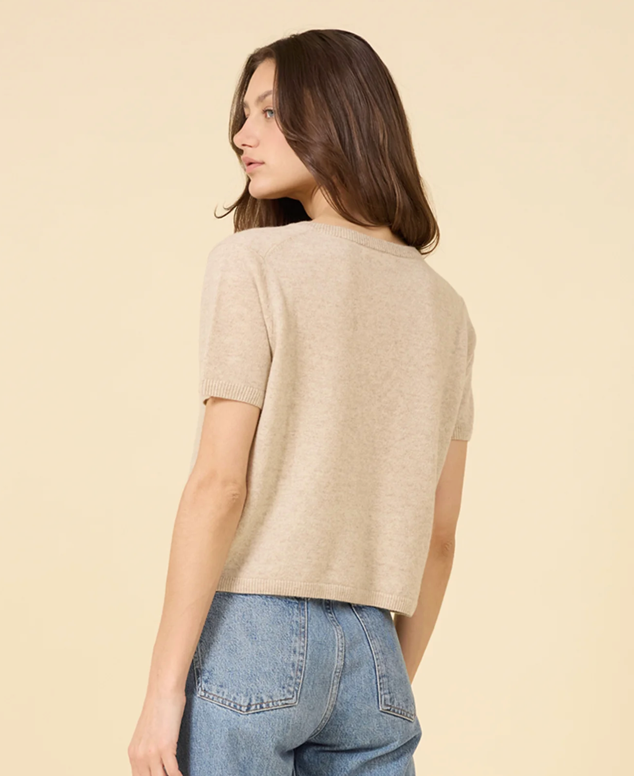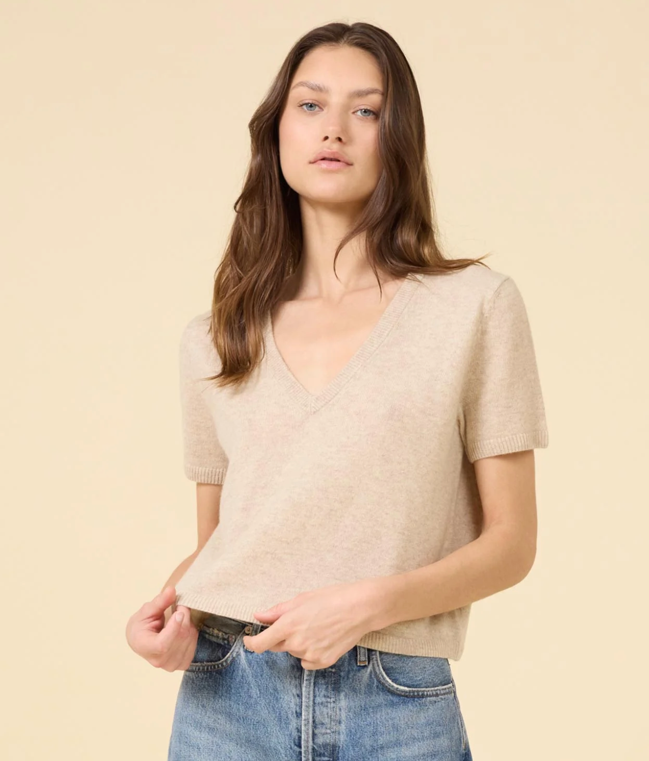 Experience everyday luxury with the Kadri Cashmere Vneck Tee. Designed with thoughtful details including a classic v-neck, cropped length, and slightly boxy body, this t-shirt offers the utmost comfort and style. Made with high-quality cashmere, it's the perfect addition to every wardrobe.100% Cashmere