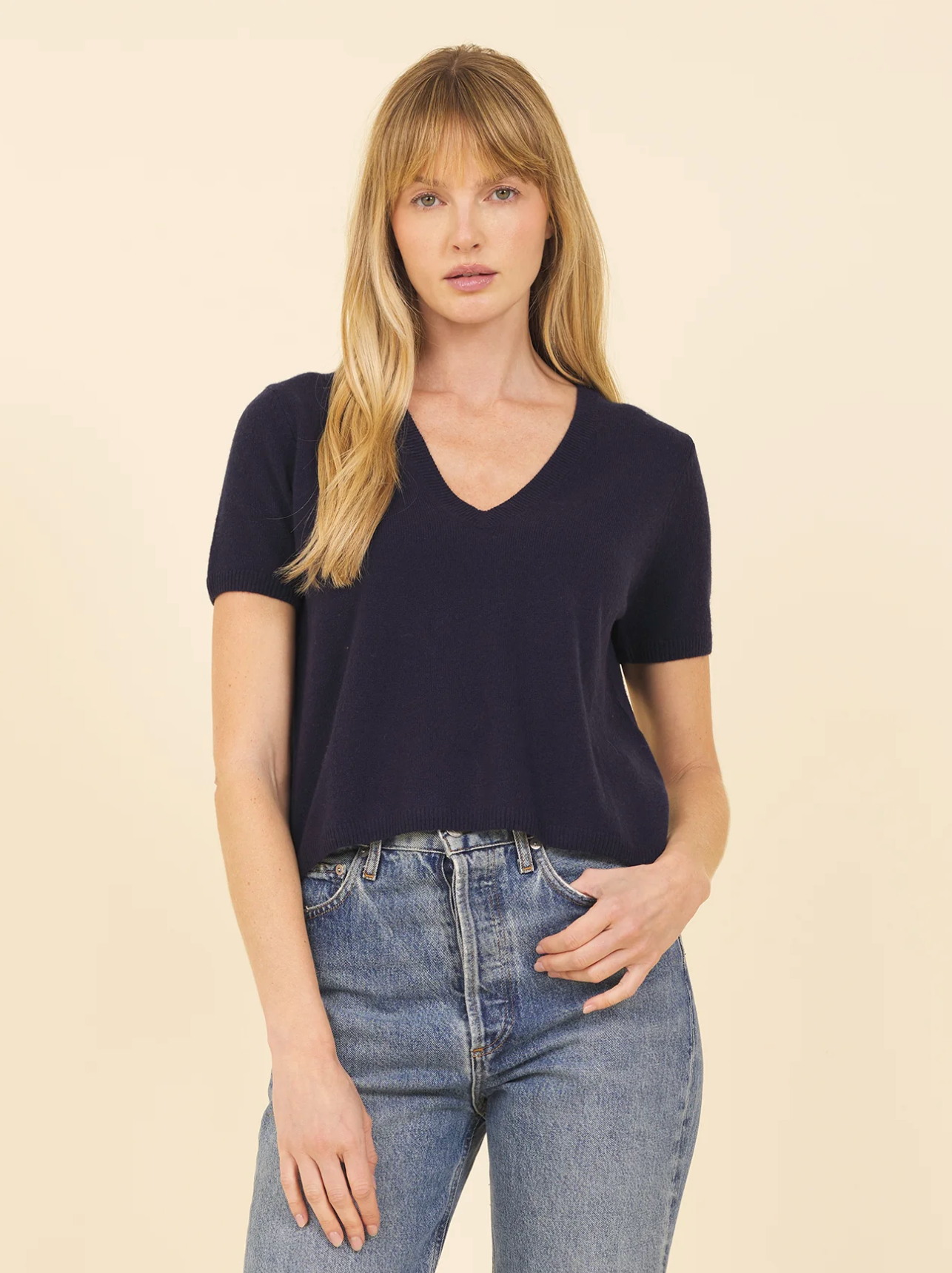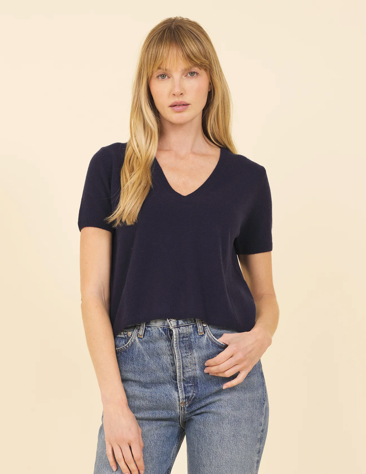 Experience everyday luxury with the Kadri Cashmere Vneck Tee. Designed with thoughtful details including a classic v-neck, cropped length, and slightly boxy body, this t-shirt offers the utmost comfort and style. Made with high-quality cashmere, it's the perfect addition to every wardrobe. 100% Cashmere