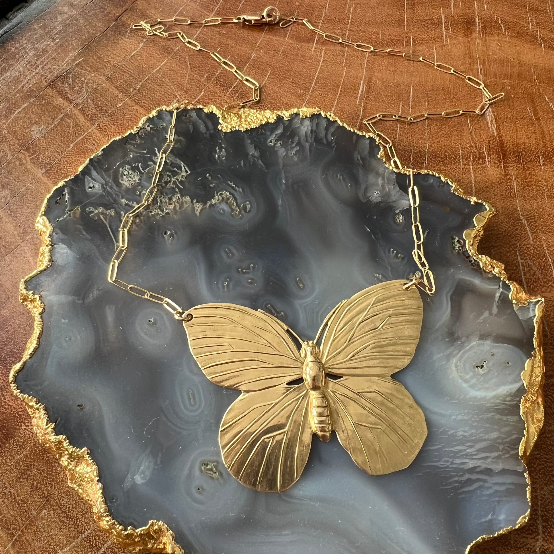 14K Gold vermeil butterfly and paperclip chain necklace.